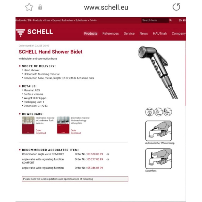 Nhà cửa & Đời sống > Đồ dùng phòng tắm > Vòi sen & vòi xịt vệ sinh || Vòi xịt, hiệu SCHELL, chống rỉ nước, sản xuất tại ĐứcCòn hàng