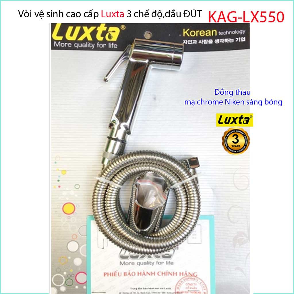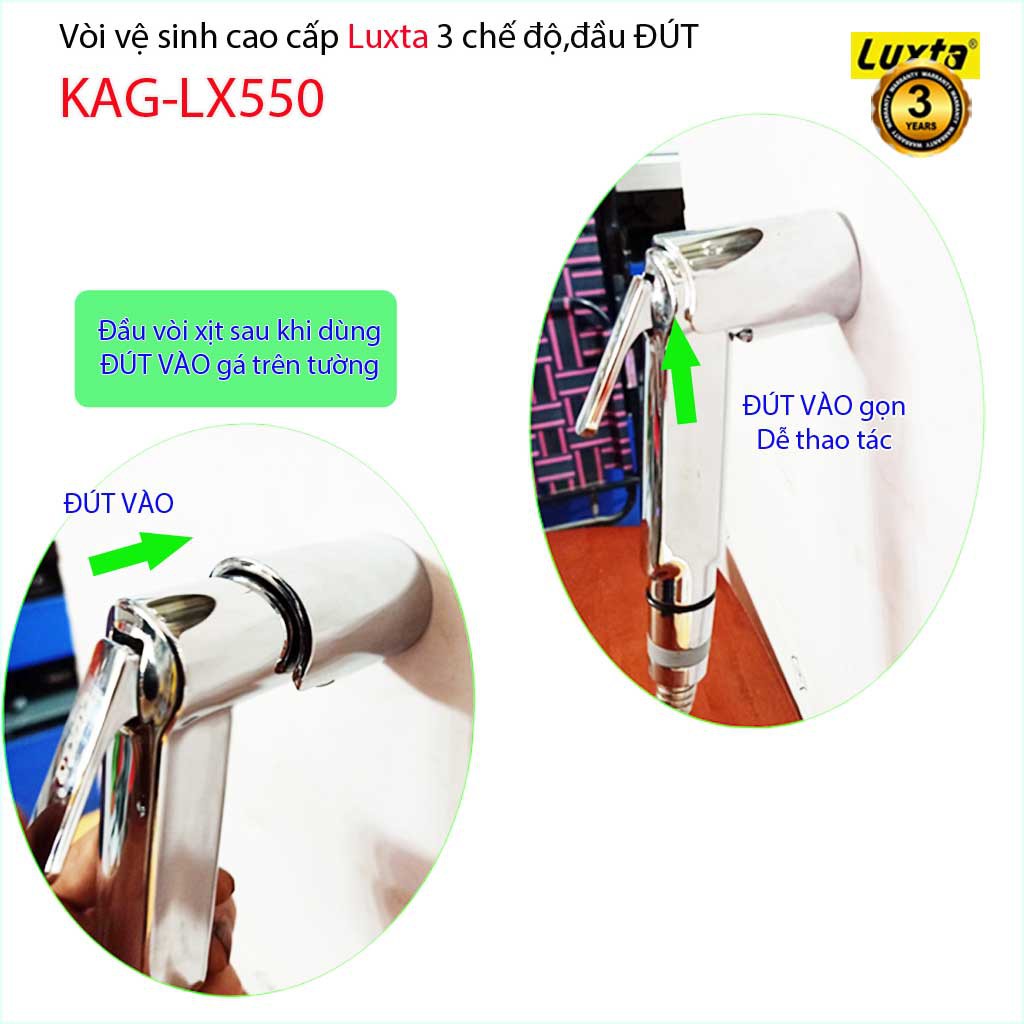 Vòi xịt nhà vệ sinh cao cấp Luxta, vòi xịt Đầu đút có chức năng giữ nước KAG-LX550Vòi xịt KAG-LX550 có gá vòi xịt thiết đặc biệt sang trọng, hiện đại, đặc biệt có 1 không 2.