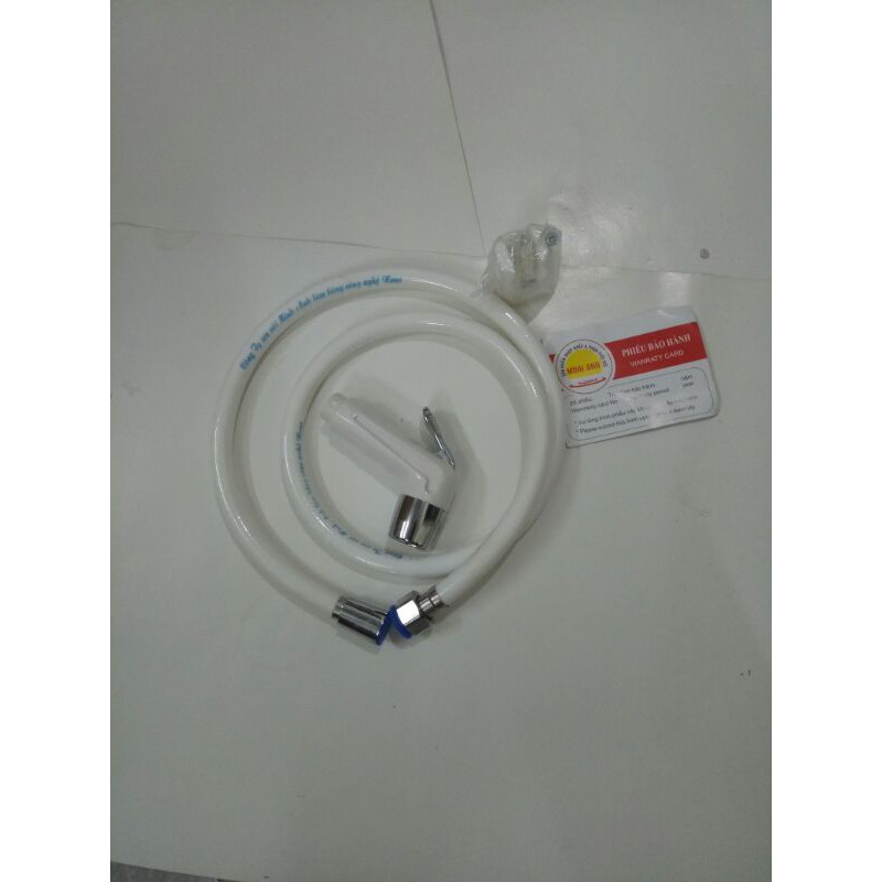 Bộ vòi xịt vệ sinh cao cấp - nhựa trắng, đầu mạ Chrome.Tay xịt cốt bên trong là thau loại tốt,ko phải cốt nhựa.