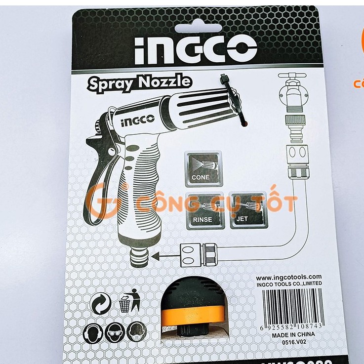 Giới thiệu Vòi xịt nước 3 chế độ Ingco HWSG032 tay nhựa TPR mềm