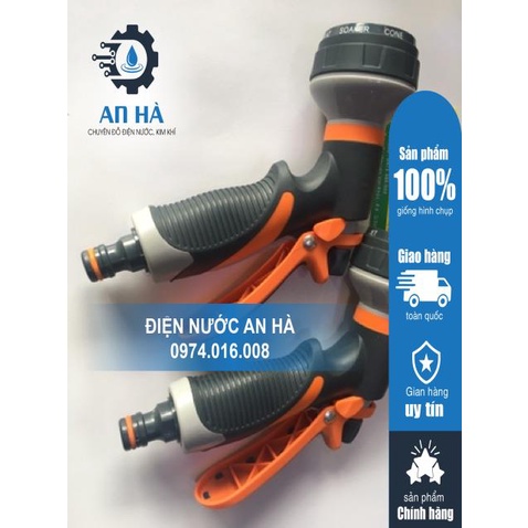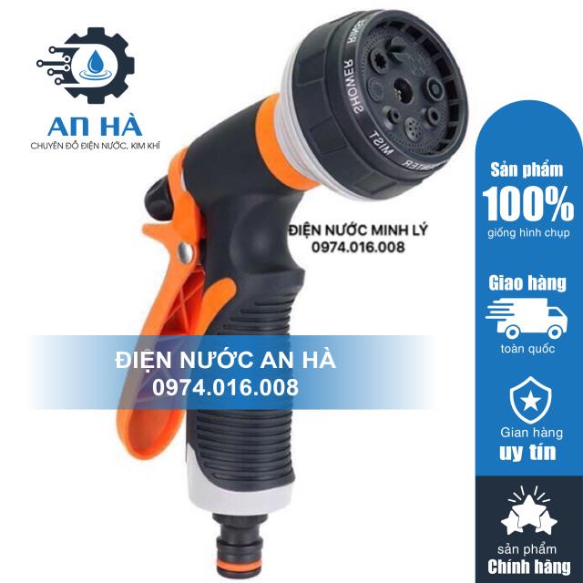 Vòi xịt nước cầm tay với 6 chế độ phun dùng để tưới cây rửa xe rất tiện lợi.