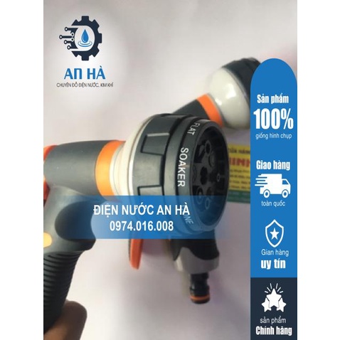 Với 6 chế độ phun rất tiện lợi để rửa xe tưới cây...thay đổi chế độ phun bằng cách xoay phần chụp màu đen ở đầu vòi