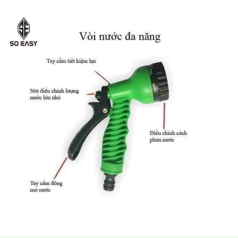 🌴🌵Chiều dài dây khi chưa co giãn 10m (+-5cm), khi sử dụng có thể giãn nở gấp nhiều lần lên đến 30m tùy theo áp lực nước sử dụng.