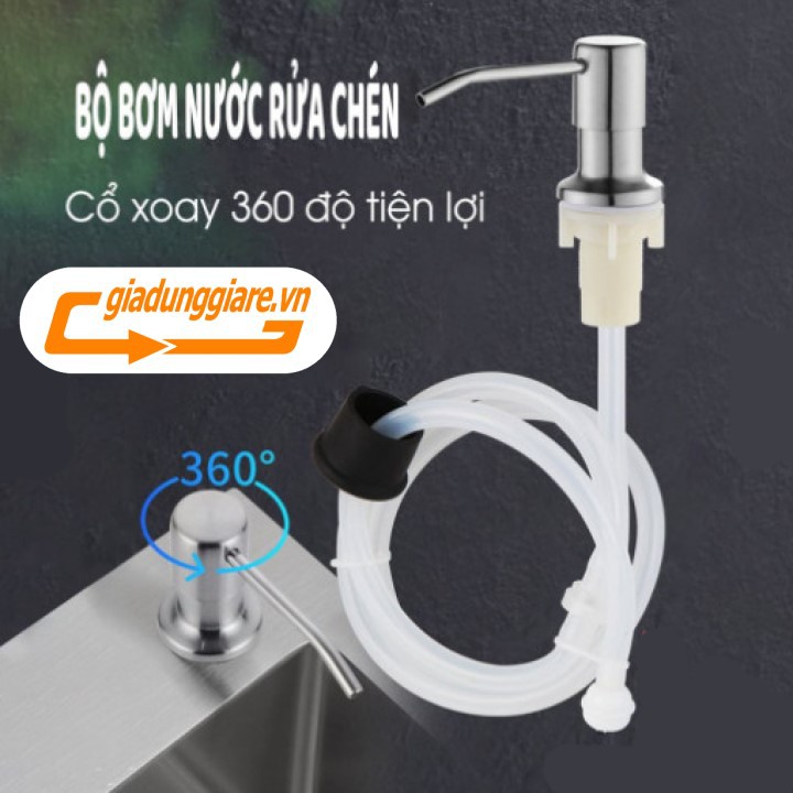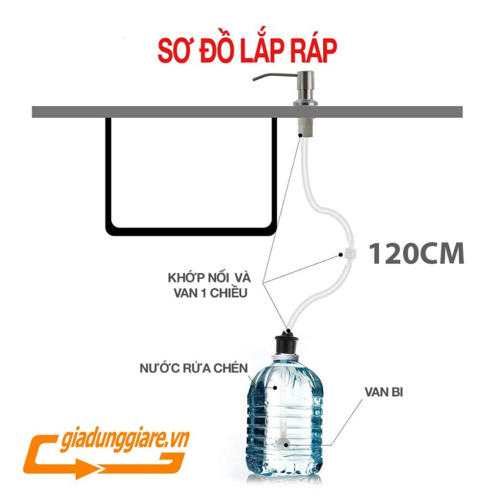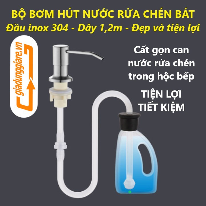 BỘ VÒI XỊT NƯỚC RỬA CHÉN Inox 304 gắn vào bồn rửa chén có dây dẫn 120cm tới chai nước rửa chén lớn đặt trong hộc bếp gọn gàng