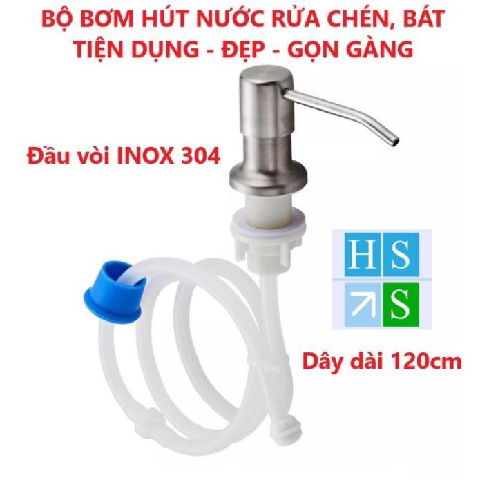 BỘ VÒI XỊT NƯỚC RỬA CHÉN Inox 304 gắn vào bồn rửa chén có dây dẫn 120cm tới chai nước rửa chén lớn đặt trong hộc bếp gọn gàng