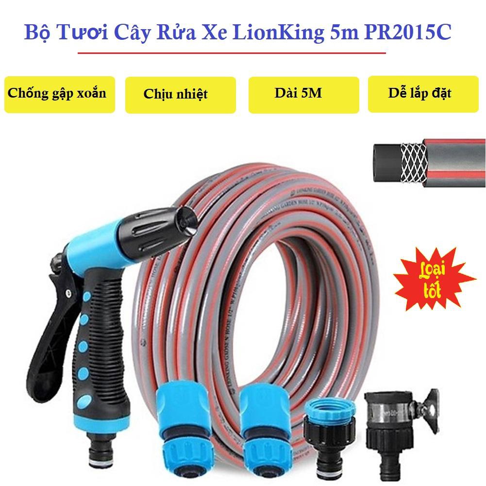 Vòi Xịt Nước Tăng Áp, Vòi Xịt Nước Tưới Cây, Bộ Vòi Tưới Cây Rửa Xe Lionking PR2015C Dây Dài 5M Kết Cấu 3 Lớp Chống Gập
