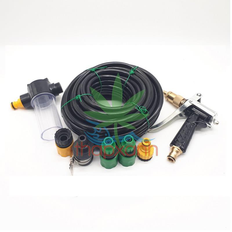 Bộ vòi xịt nước tưới cây, Rửa xe cho việc rửa xe, tẩy rửa sàn nhà trở nên dễ dàng hơi. Với thiết kế nhỏ gon, thuận tiện dễ dàng tháo lắp, chỉ cần thao tác kết nối nhanh gọn đơn giản với vòi phun rửa giúp bạn tiết kiệm thời gian và chi phí.