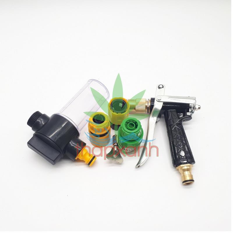Bộ vòi xịt nước tưới cây, Rửa xe BTD-7204 vòi đồng 5 trong 1 kèm bình xà phòng + 15m Dây