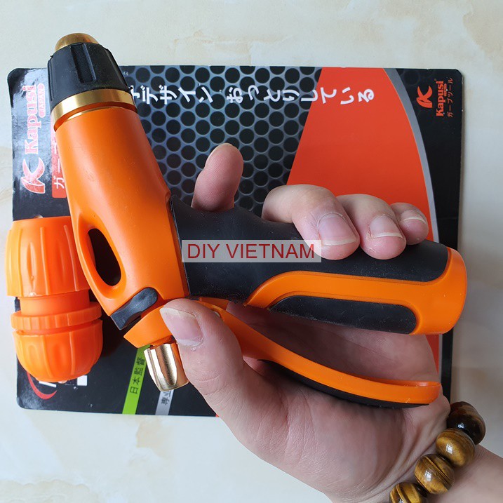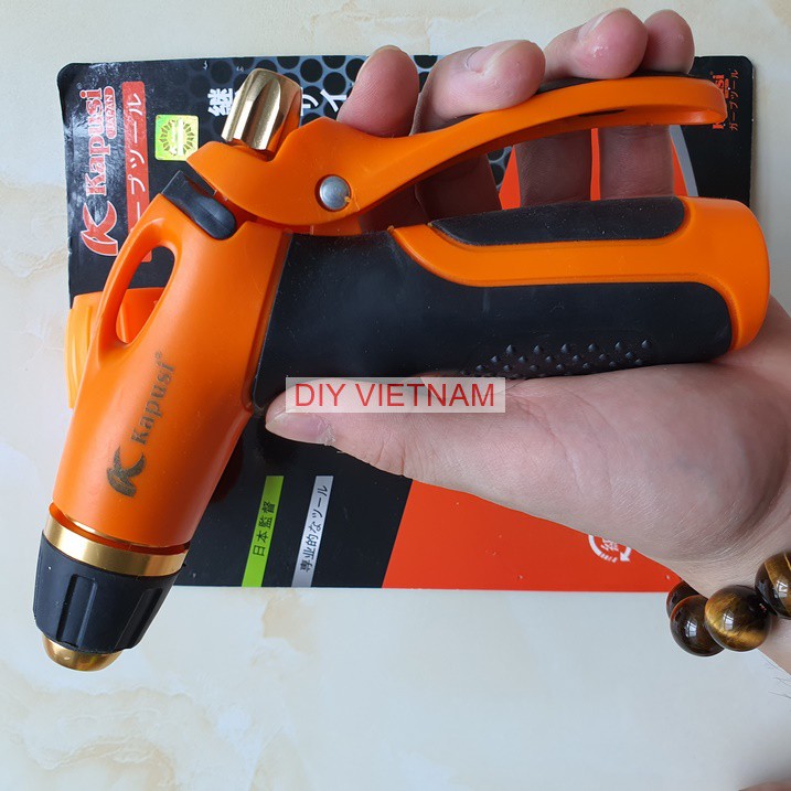 Dụng cụ phun nướcư 1 tia KAPUSI rất thích hợp để sử dụng rửa xe trong nhà bạn, sản phẩm được thiết kế theo dạng súng nhầm mục đích tạo sự thuận lợi cho người dùng có thể phun nước liên tục hoặc tạm ngưng nhưng không cần phải khóa nguồn nước
