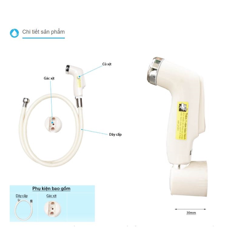 - Áp lực nước : 0.05 MPa ~ 0.75 MPa, đầu xịt mạ Cr/Ni