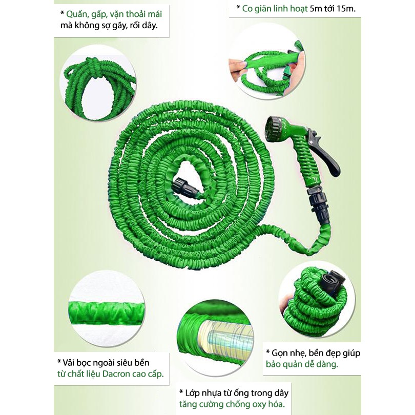 Vòi xịt rửa xe ô tô xe máy đa năng co giãn 15m van gắn cỡ 20 25mm, vòi tưới cây vệ sinh sân vườn magic hose