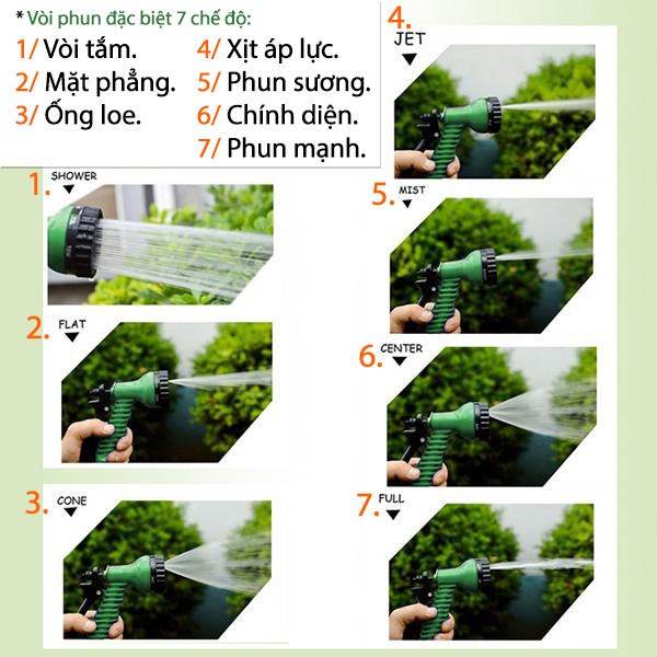 - VÒI NƯỚC ĐỦ MẠNH VÒI SẼ TỰ CO DÃN ĐẾN 15M.