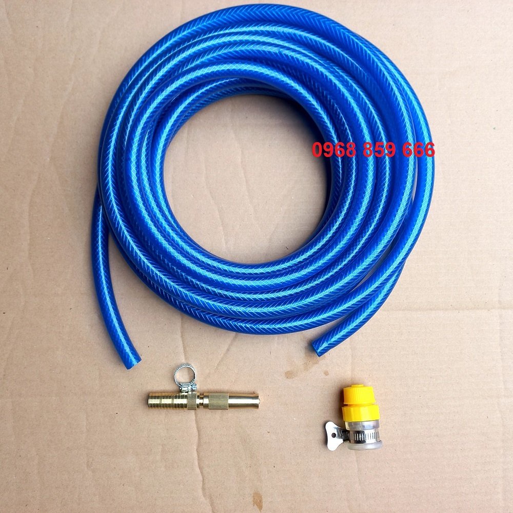 - Dây dẫn nước kết hợp với vòi xịt đa năng có thể tùy chỉnh phun rộng, phun tia mạnh, phun tập trung, thích hợp với nhiều tính năng như tưới cây, rửa nhà, phun rửa chuồng trại, rửa oto xe máy,…