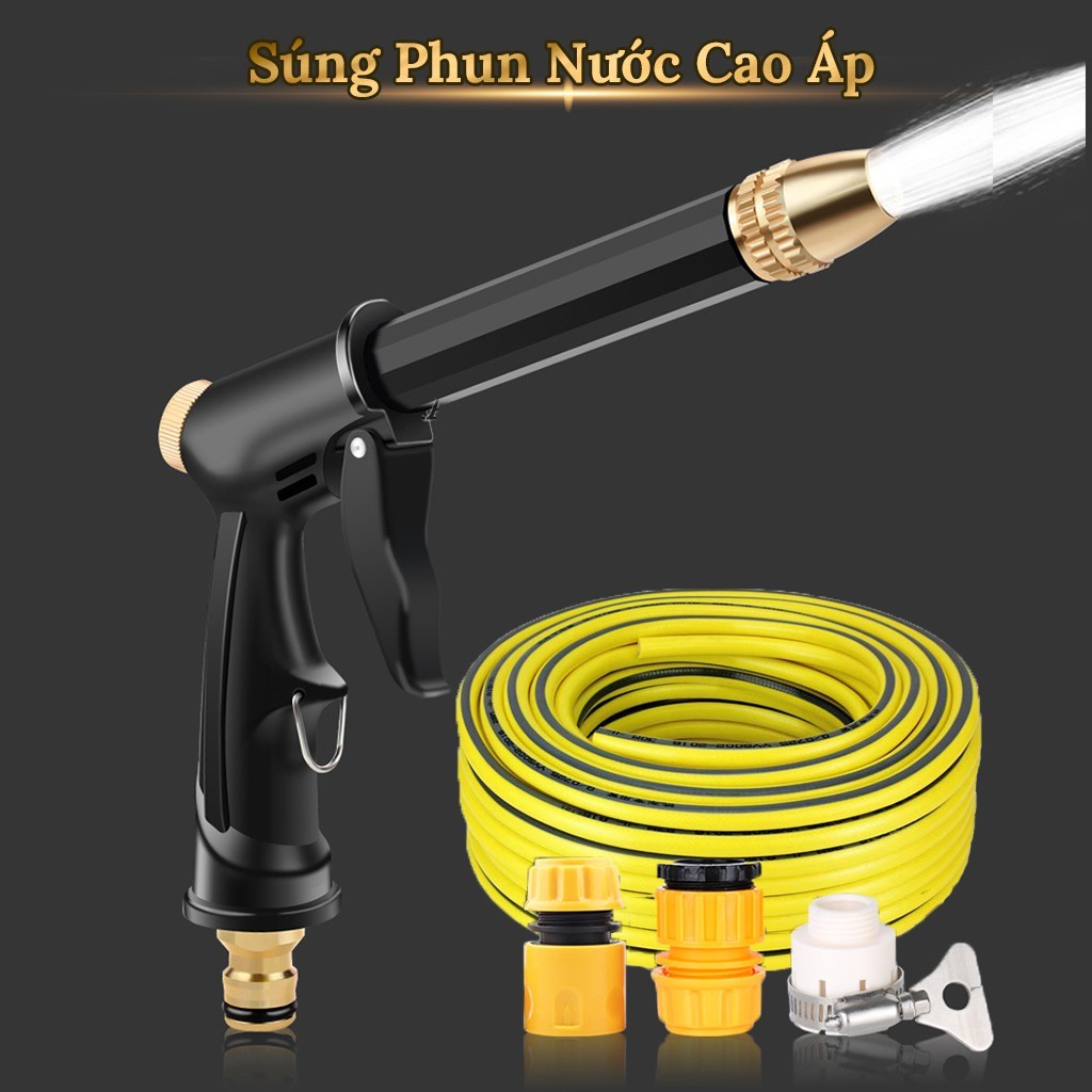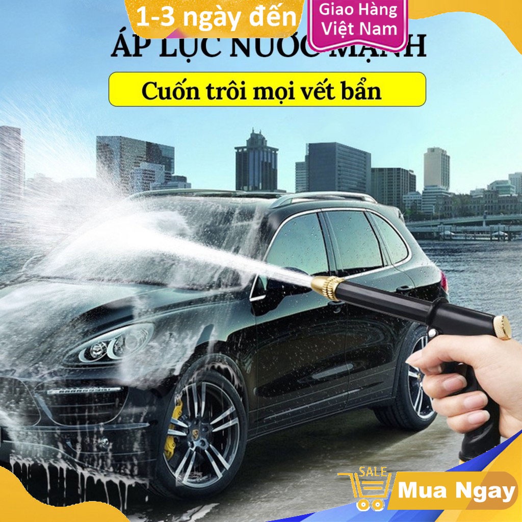Vòi xịt tăng áp rửa xe tưới cây áp lực cao có thể điều chỉnh áp lực nước tặng 3 đầu chuyển đổi và ống nước dài 10m