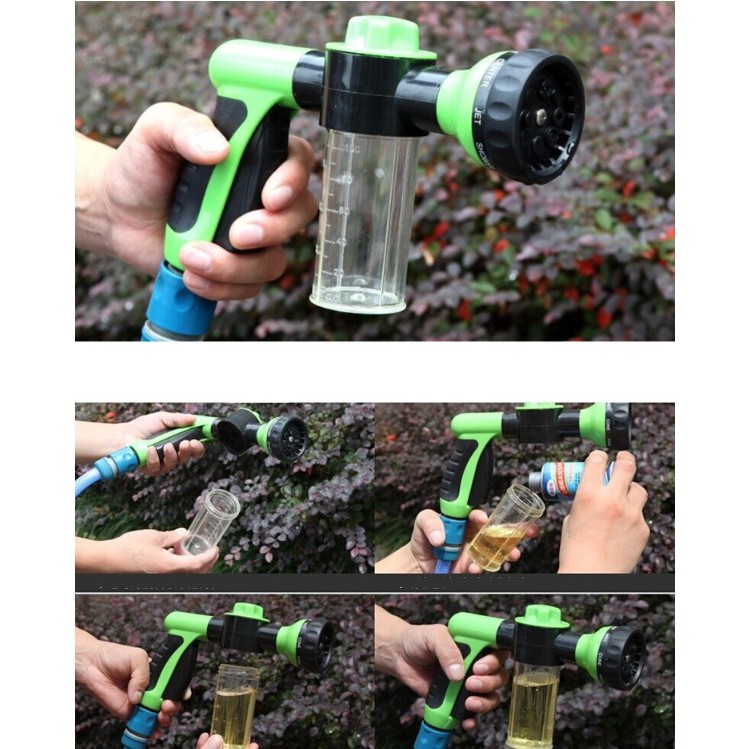 Vòi xịt tăng áp vệ sinh bọt tuyết 8 chế độ nước tặng 15 mét dây - Home and GardenVòi nước nhà bạn thường xuyên sử dụng để rửa xe, tưới cây, lau sàn.... Tuy nhiên, do áp lực nước thấp cùng với việc chỉ có một kiểu phun nước khiến bạn gặp khó khăn khi điều chỉnh lượng nước phù hợp với những nhu cầu sử dụng khác nhau. Chúng tôi giới thiệu cho bạn Vòi xịt tăng áp rửa xe bọt tuyết nhiều chế độ + tặng 15 mét dây sẽ mang đến cho bạn giải pháp cho nhiều nhu cầu sử dụng.