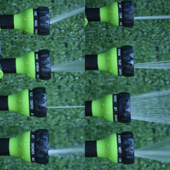 Vòi có 8 chế độ xịt khác nhau; xịt thẳng 1 tia nước, phun sương, xịt hình tam giác, xịt hình cầu... giúp bạn điều chỉnh phù hợp với nhu cầu sử dụng.