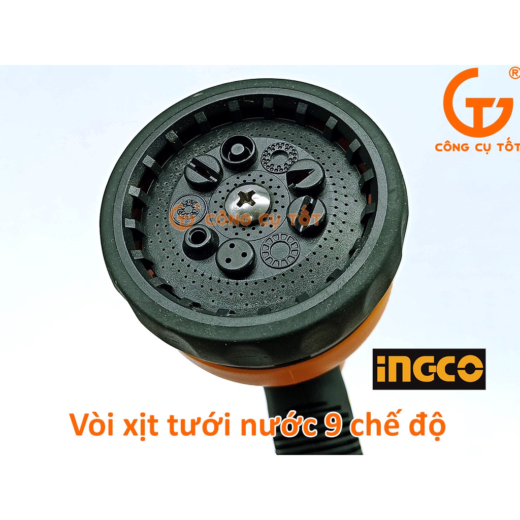 Vòi xịt tưới nước 9 chế độ Ingco HWSG092 tay nhựa TPR mềm