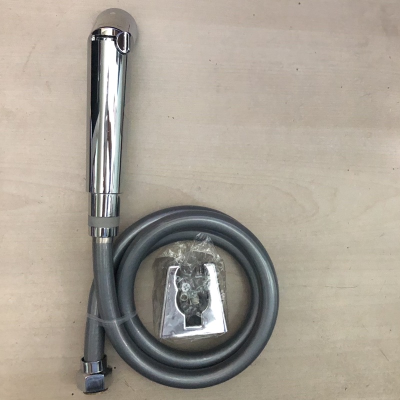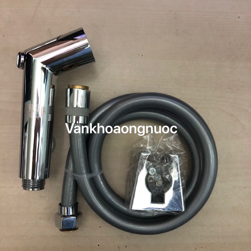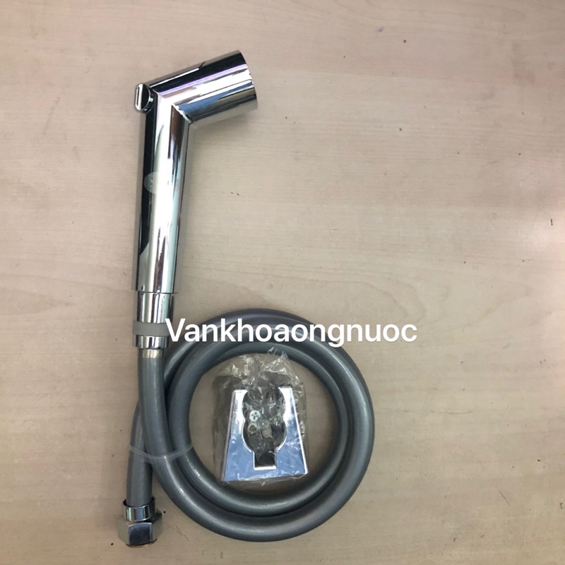Bộ vòi xịt vệ sinh gồm có : Đầu vòi xịt, Dây cấp nước, Đế cài đầu vòi xịt và ốc vít- Đầu vòi xịt bằng nhựa mạ crom sáng bóng chống ố bẩn, tay đóng mở kiểu gạt ngang qua lại rất tiện và nhẹ không bị mỏi tay như dòng tay nhấn