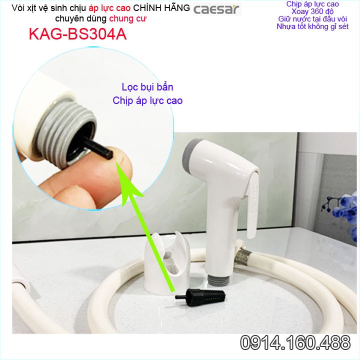 Vòi xịt vệ sinh Caesar KAG-BS304A giữ nước xoay 360 độ và chiu áp lực mạnh chung cư nhà cao tầng siêu bền sử dụng tốtSản xuất bởi công ty Thiết bị vệ sinh Caesar