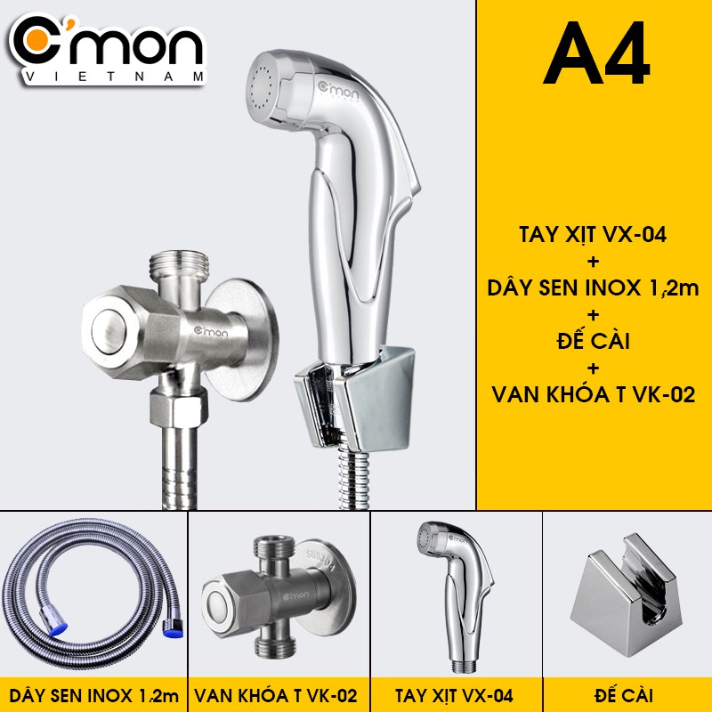 Bộ vòi xịt vệ sinh cao cấp C'mon VX-04 + Van khóa T C'mon VK-02-T
