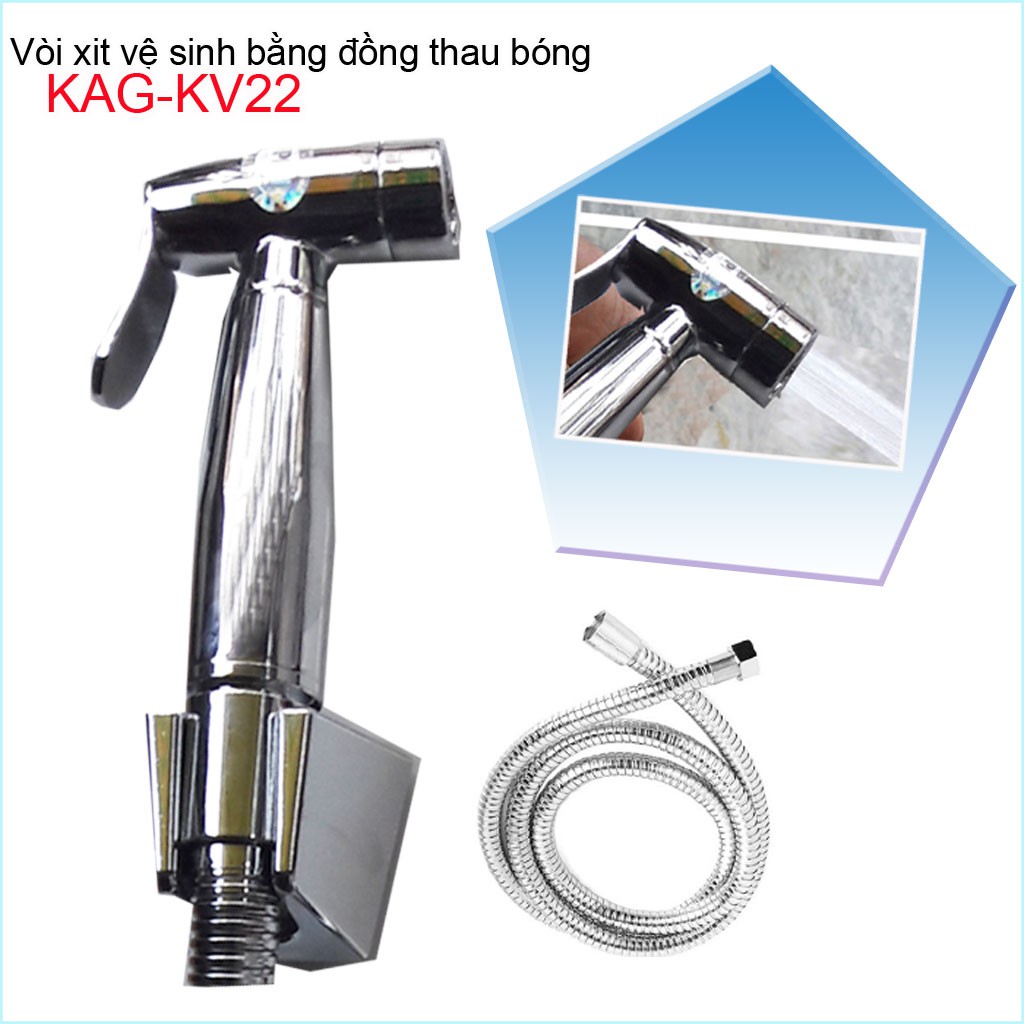 Vòi xịt vệ sinh cao cấp KAG-KV22Đầu vòi xịt bằng đồng mạ Chrome+ niken, chống rỉ séc, luôn sáng bóng, vòi xịt làm bằng đồng siêu bền, tránh bể vỡ khi va đập hoặc làm rớt vòi xuống sàn nhà