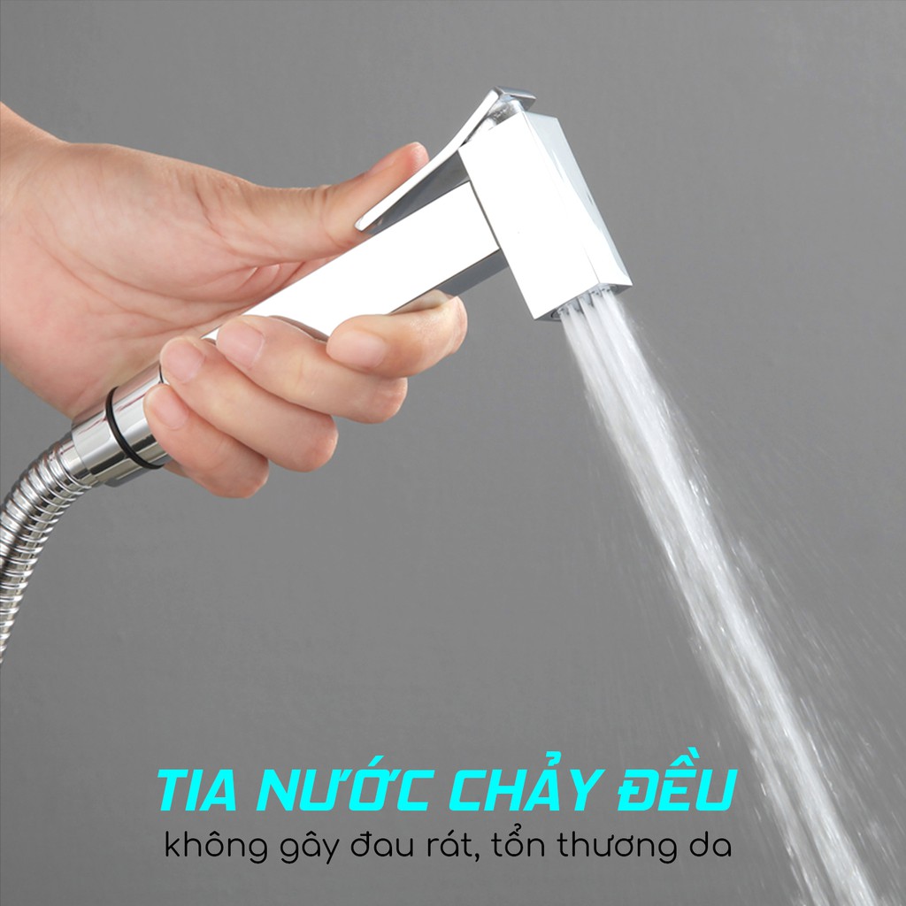 Phần đầu vòi xịt vệ sinh có các lỗ thoát nước được phân bố đều, tia nước dịu nhẹ không gây đau rát.