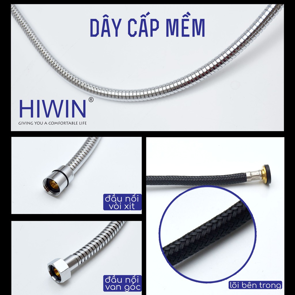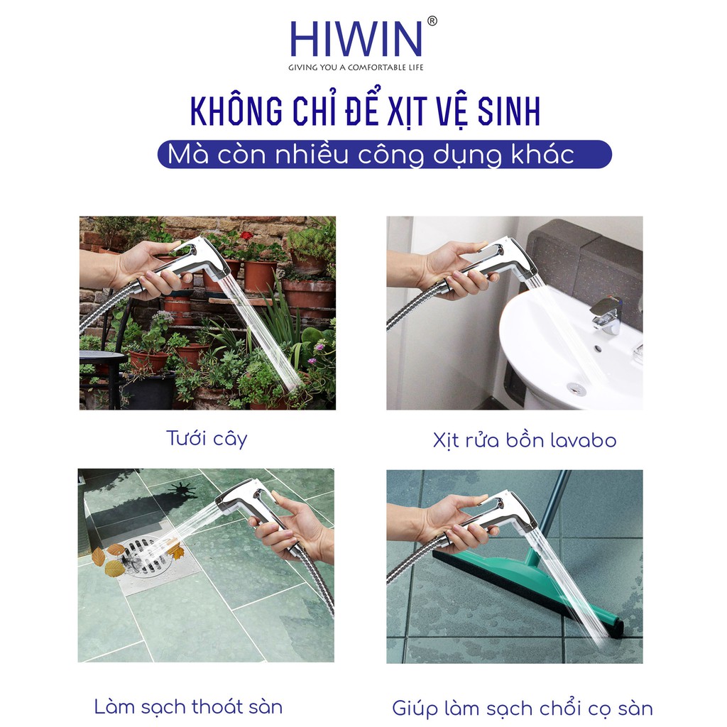 Vòi xịt vệ sinh đa năng Hiwin với dây cấp chịu đc áp lực nước cao, các đầu nối dây cấp đảm bảo kín khít không bị dò nước, chất liệu bền bỉ dùng được lâu dài