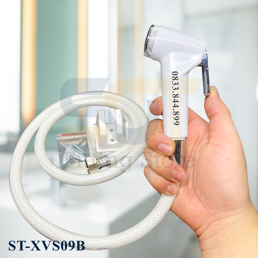 Bộ vòi xịt vệ sinh nhựa trắng TĂNG ÁP ST-XVS09 giá rẻ chất lượng cao - Dây nhựa dài 1.2m tán đồng mạ