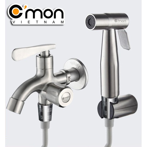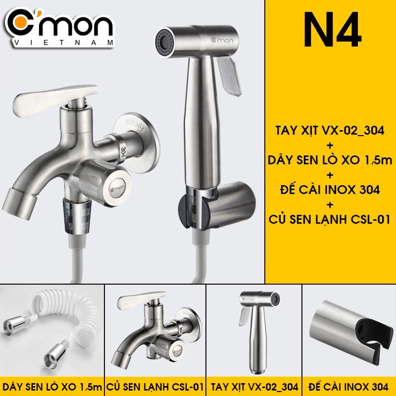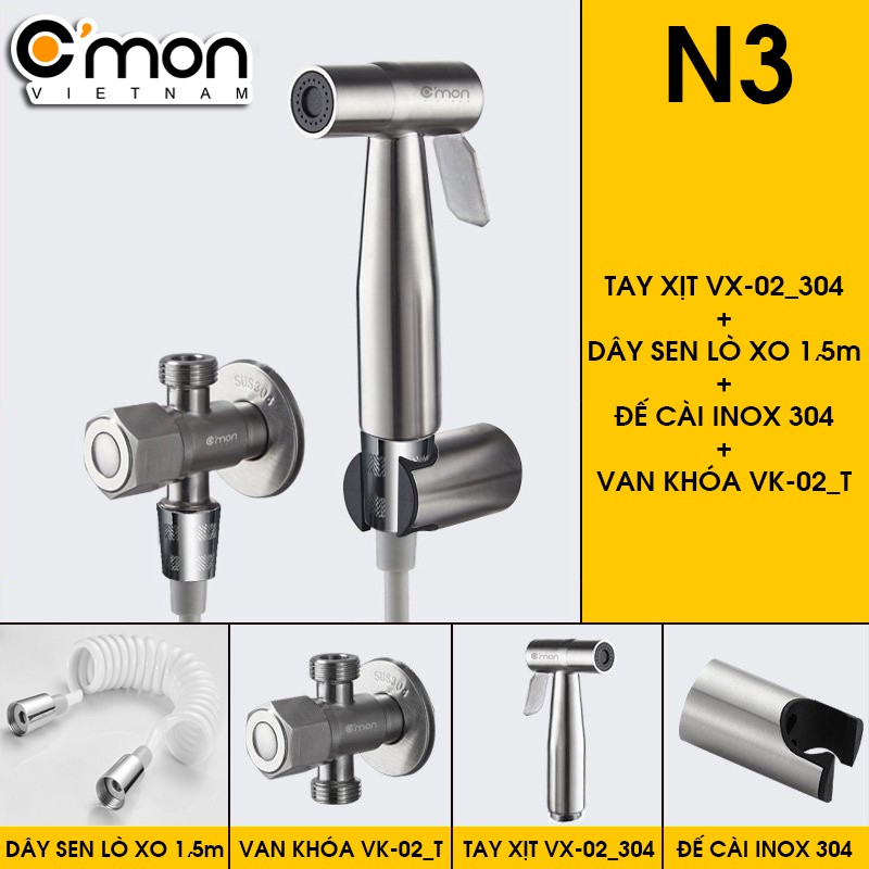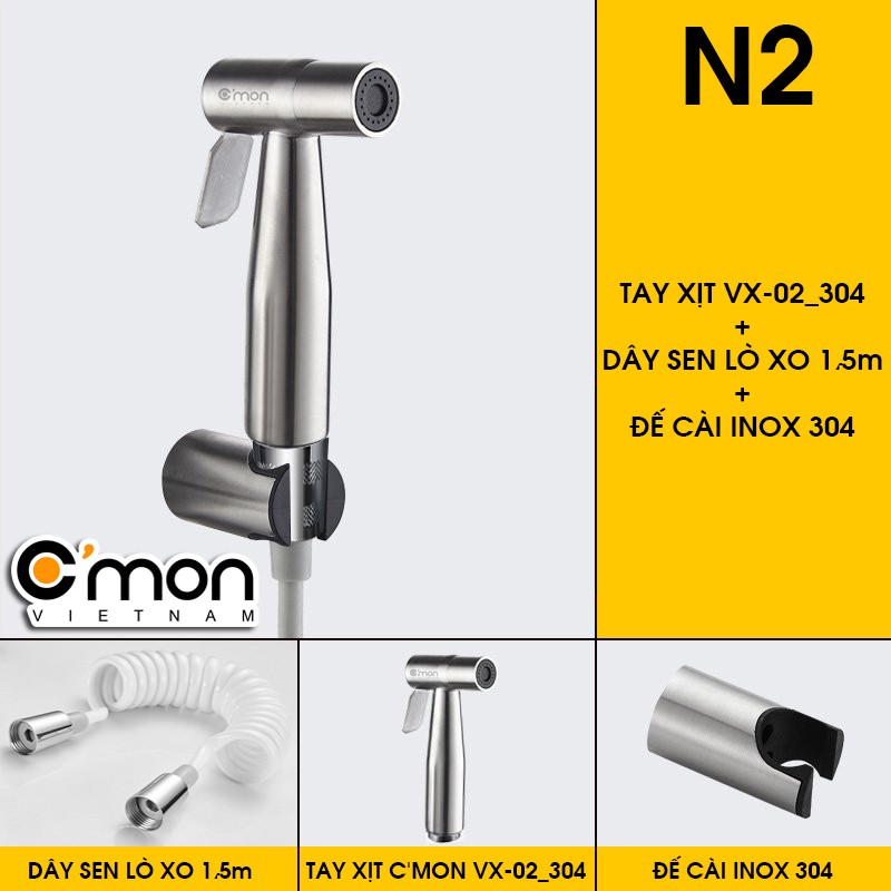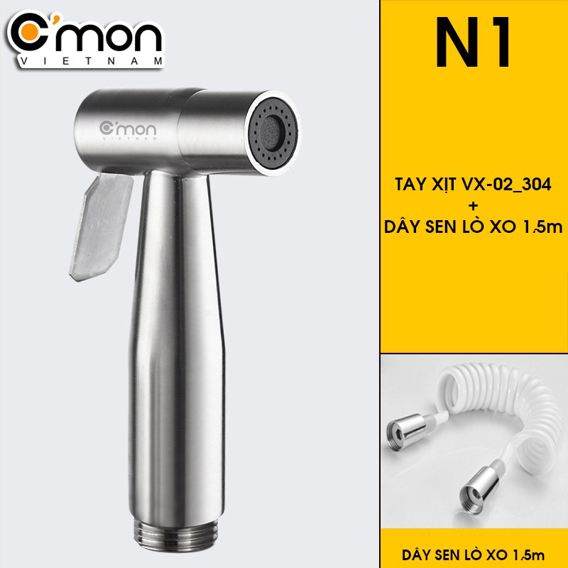 Bộ vòi xịt vệ sinh INOX 304 cao cấp C'MON VX-02-N (dây sen PU lò xo)