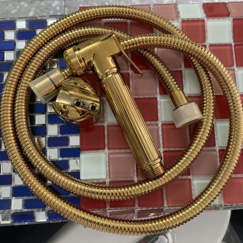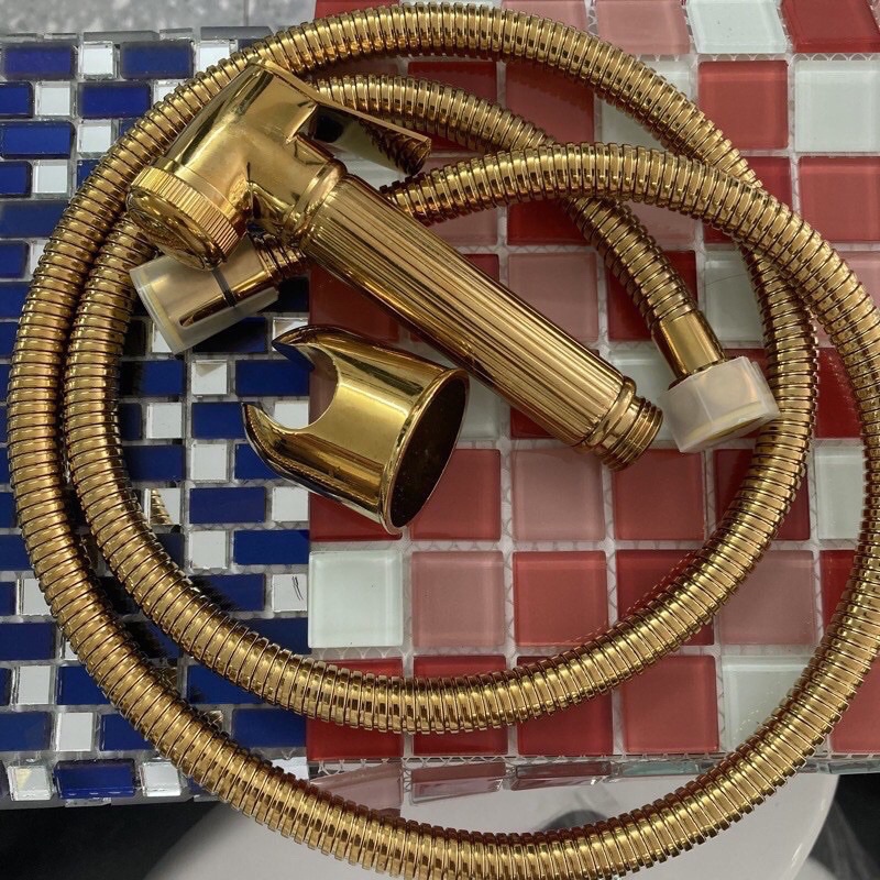 Vòi xịt vệ sinh nhà tắm inox 304 Richter Store mạ vàng dùng xịt rửa nhà tắm siêu mạnh, dây dài 1m5 bền bỉ