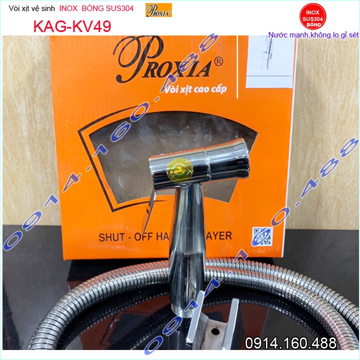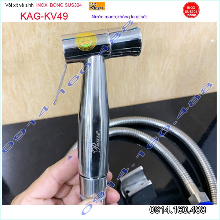 Vòi xịt vệ sinh inox bóng sus304 Proxia KAG-KV49, vòi rửa vệ sinh cao cấp