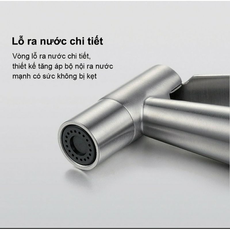 Chất liệu:vật liệu Inox 304 304 có màu sắc sáng bóng, nên giữ được độ mới lâu hơn so với các loại vòi xịt thông thường