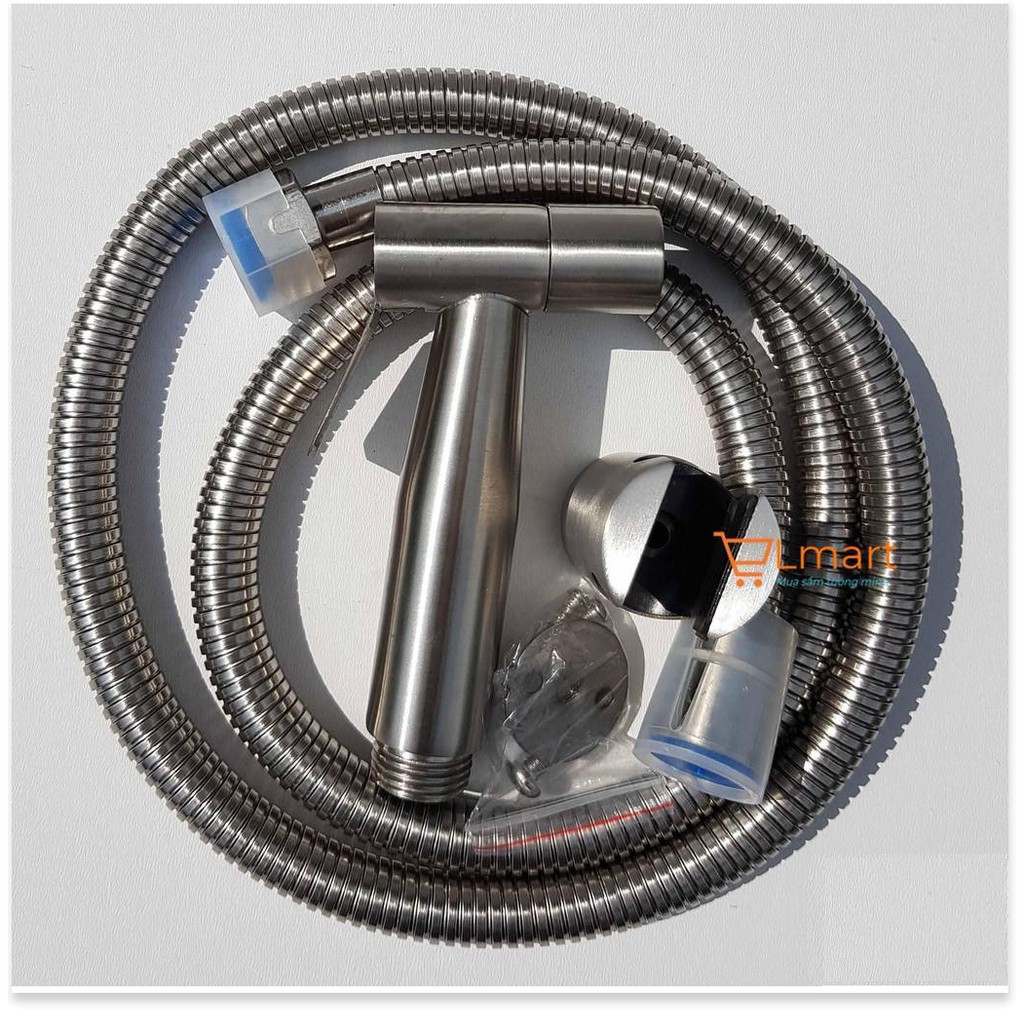 Vòi xịt vệ sinh inox304 cao cấp + Dây 1,2m chống xoắn đầu đồng + Cài xịt Inox Lmart