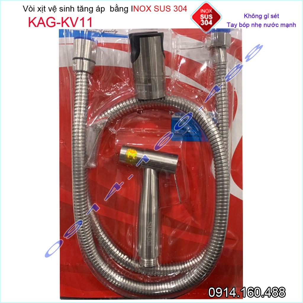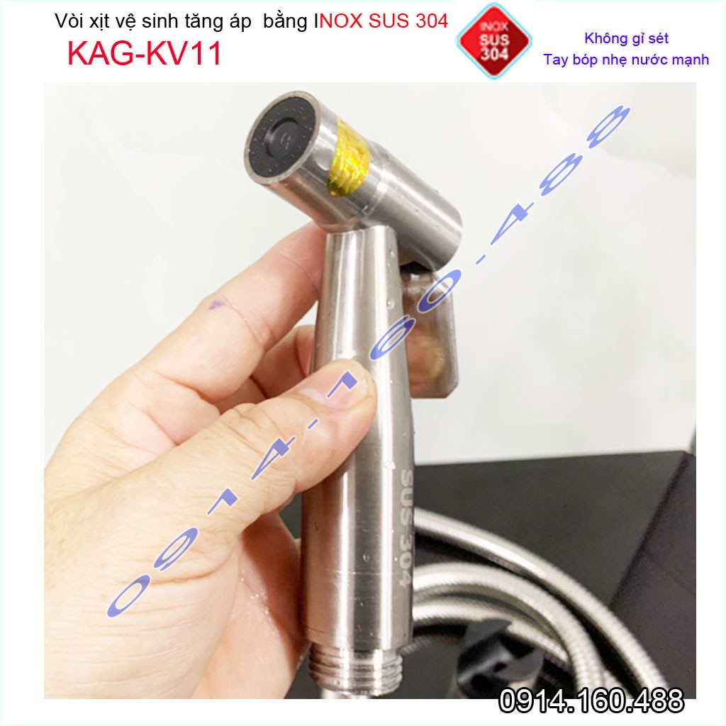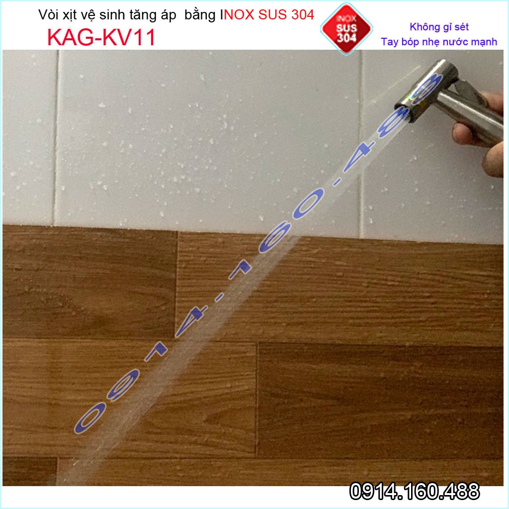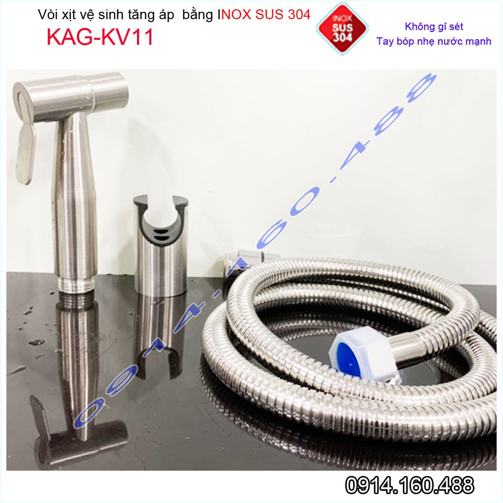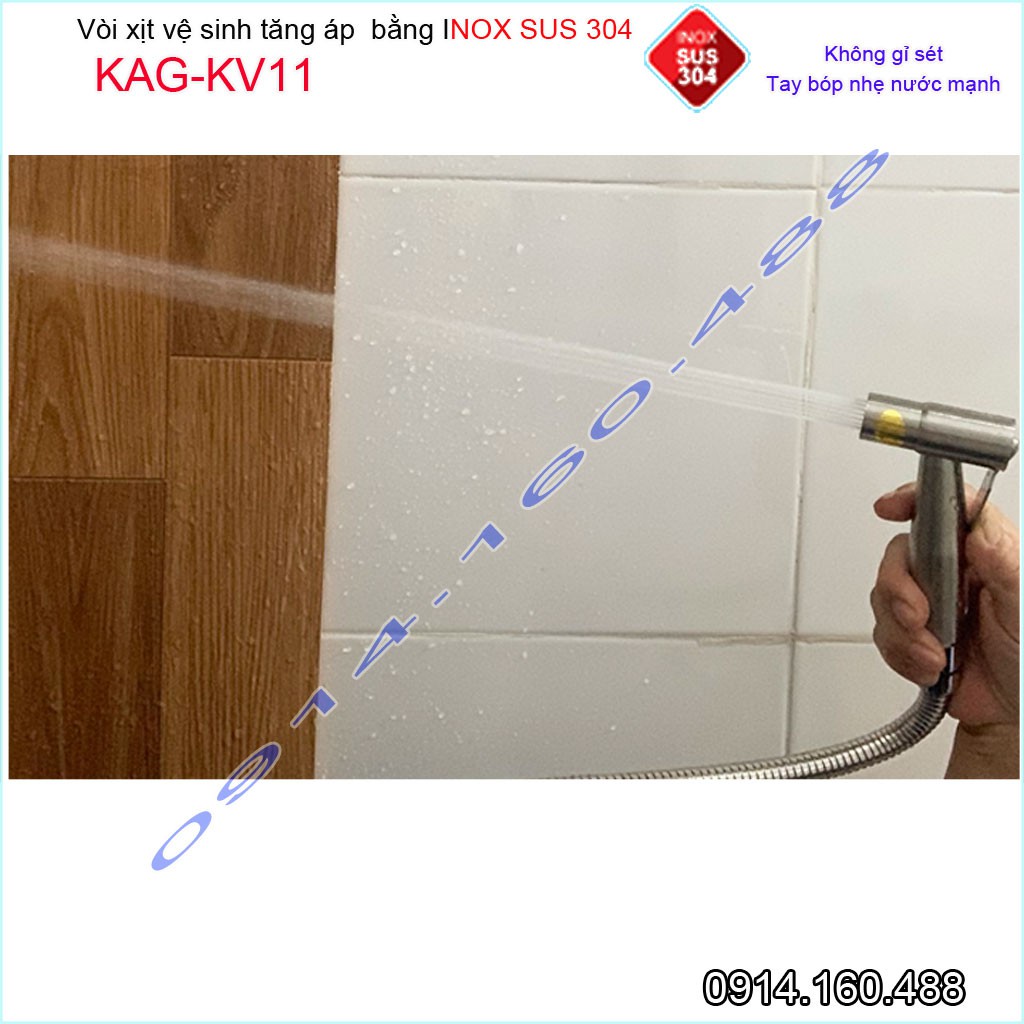 Vòi xịt vệ sinh KAG-KV11 SUS304, xịt rửa bồn cầu inox mờ tia nước mạnh chịu áp cao lực chung cư siêu bền sử dụng tốt
