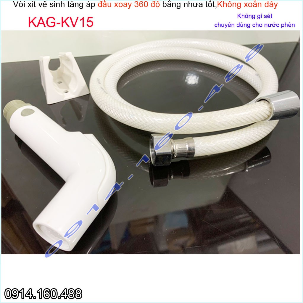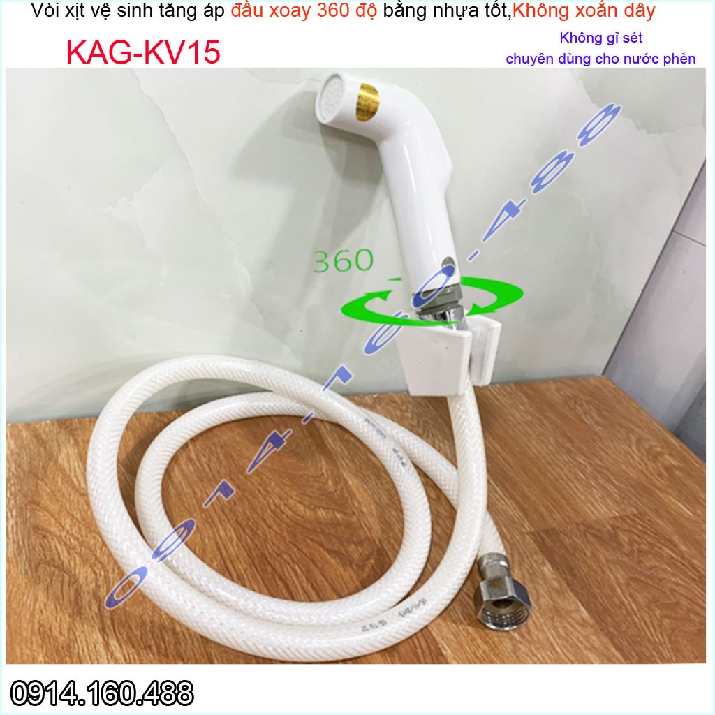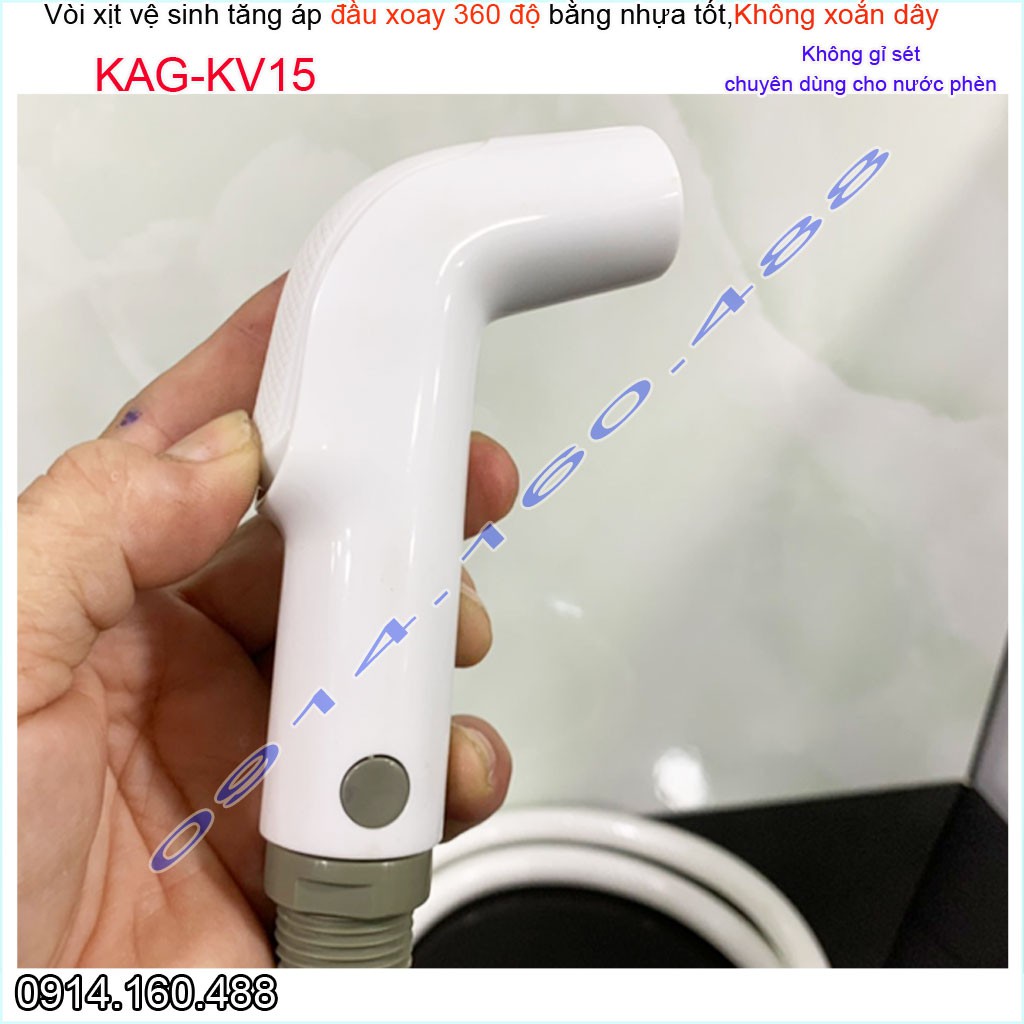 Vòi xịt vệ sinh KAG-KV15 xoay 360 độ, vòi rửa bồn cầu nhựa trắng tia nước mạnh chịu áp lực mạnh chung cư nhà cao tầng