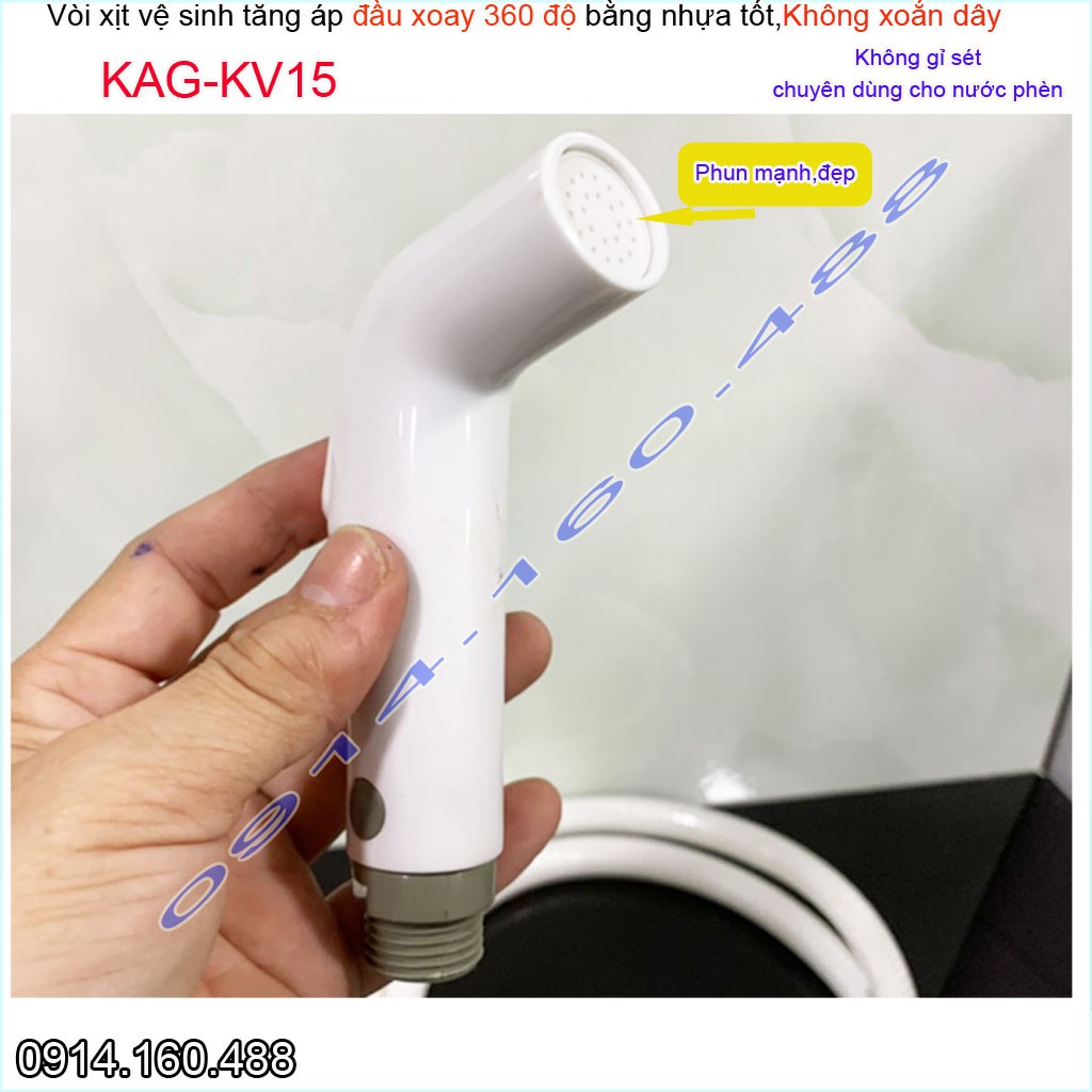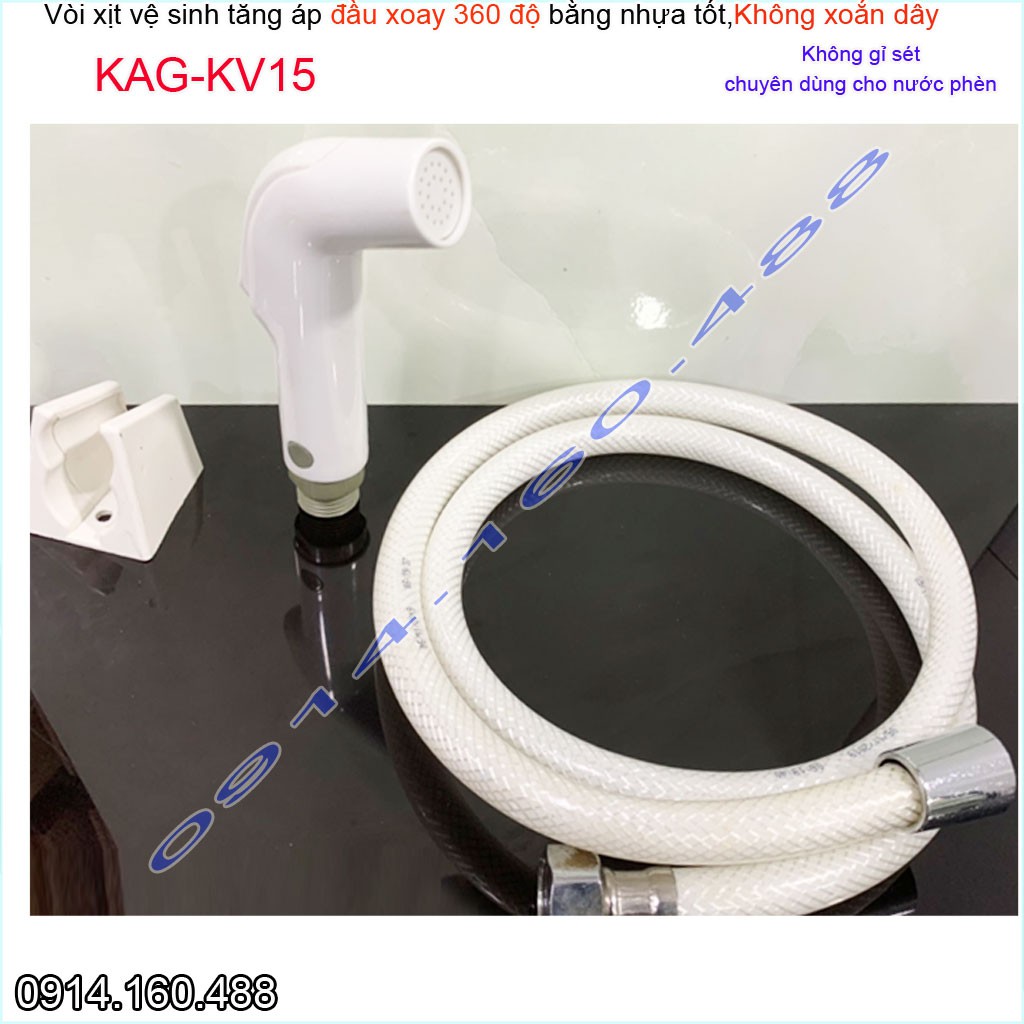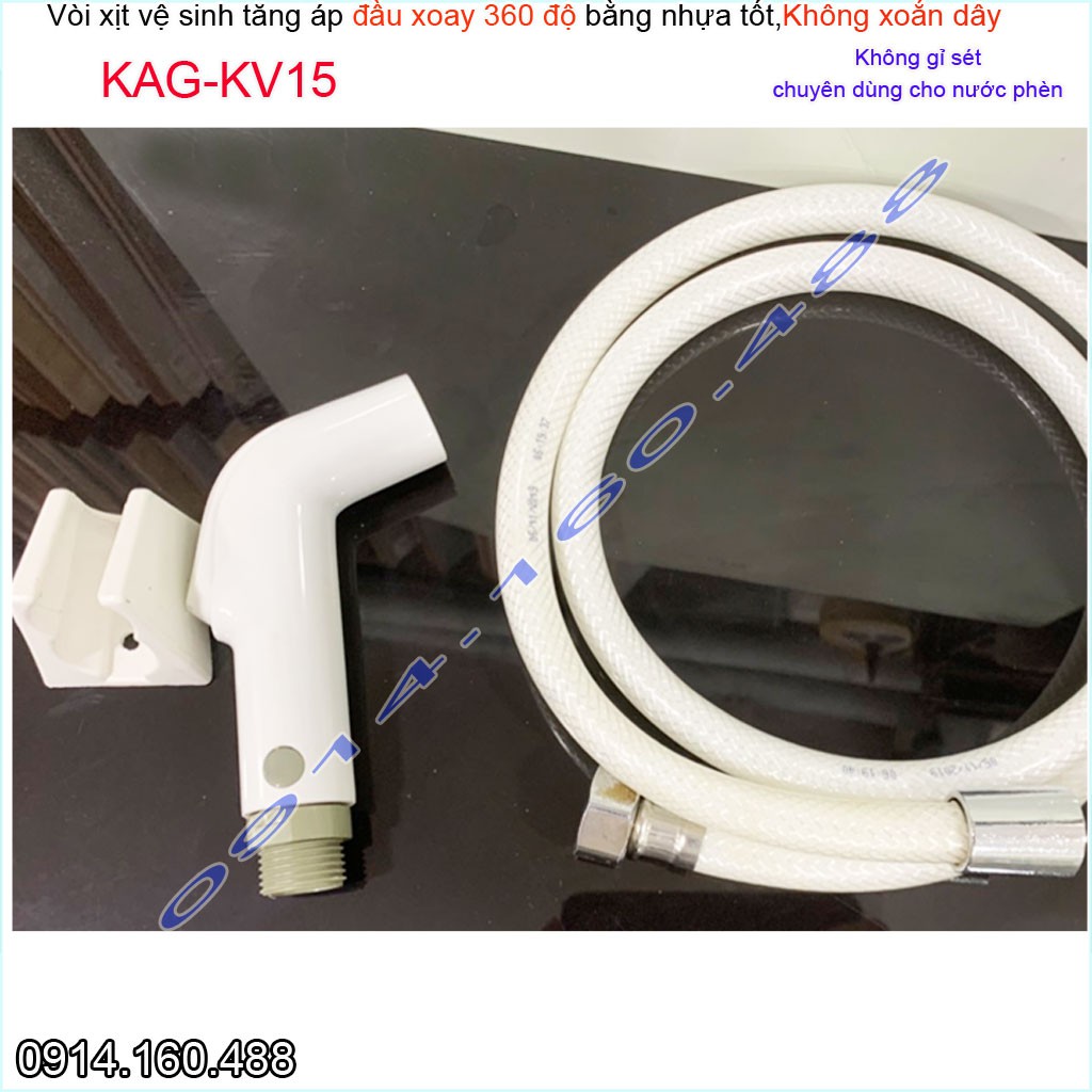 Vòi xịt vệ sinh KAG-KV15 xoay 360 độ, vòi rửa bồn cầu nhựa trắng tia nước mạnh chịu áp lực mạnh chung cư nhà cao tầng