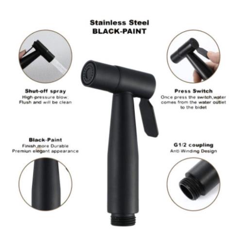 Vòi xịt vệ sinh màu đen sơn tĩnh điện cao cấp, sang trọng, inox 304 màu đen