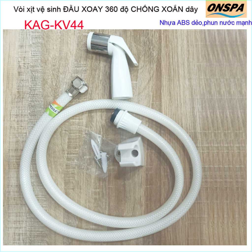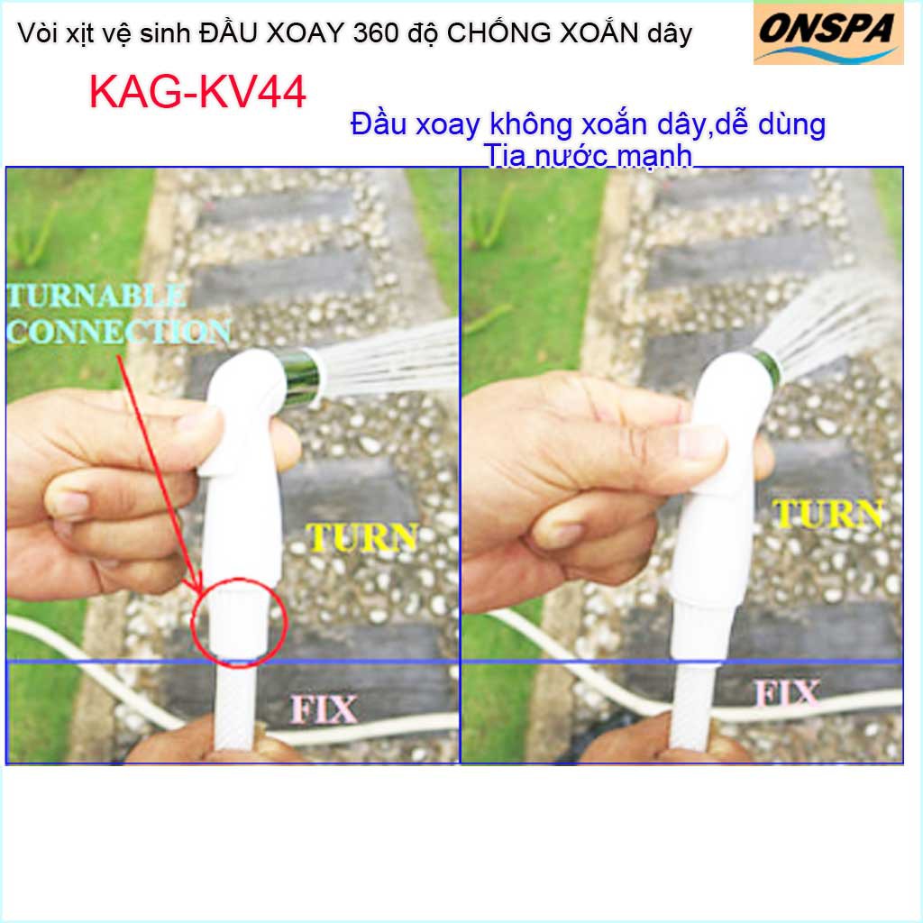 Vòi xịt vệ sinh nhà tắm, vòi xịt bồn cầu Onspa, vòi xịt cao cấp siêu bền KAG-KV44 có thể xoay 360 độ, nên không bị quặn dây, dễ dàng sử dụng