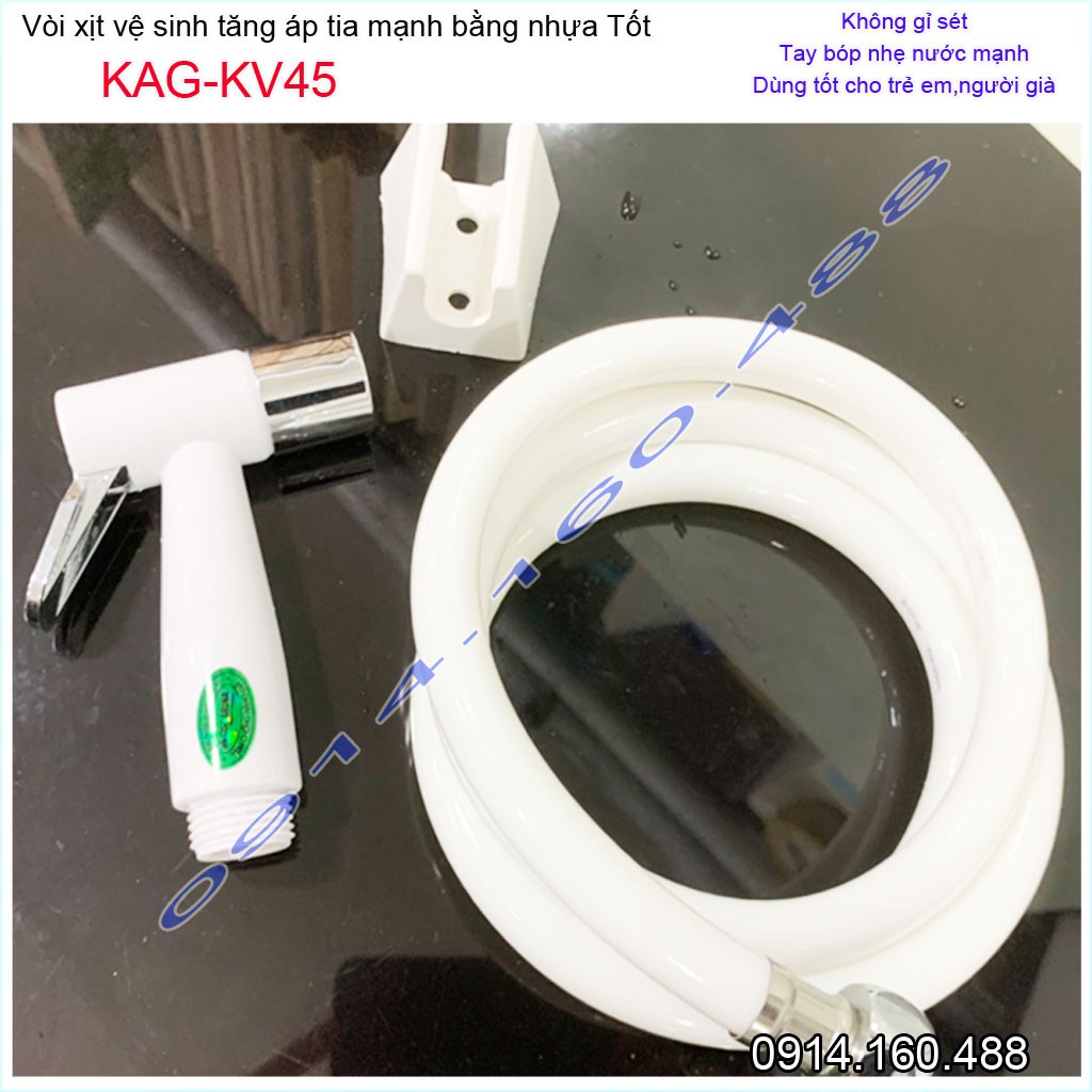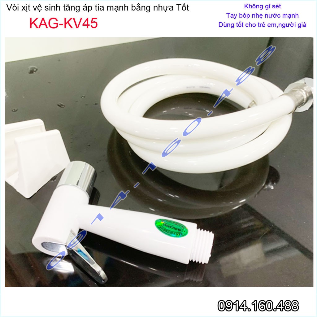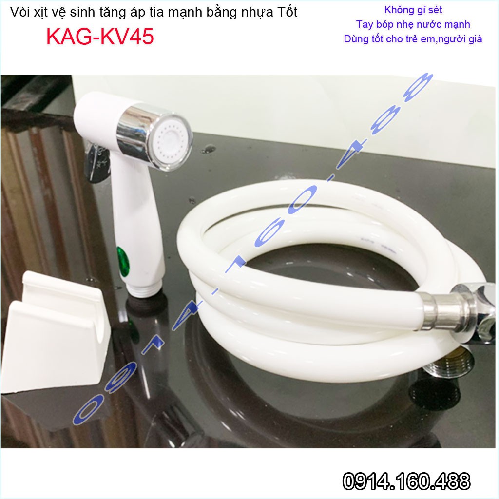 Chật liệu : Vòi xịt KAG-KV45 nhựa trắng; Vòi xịt KAG-KV46 nhựa mạ inox bóng