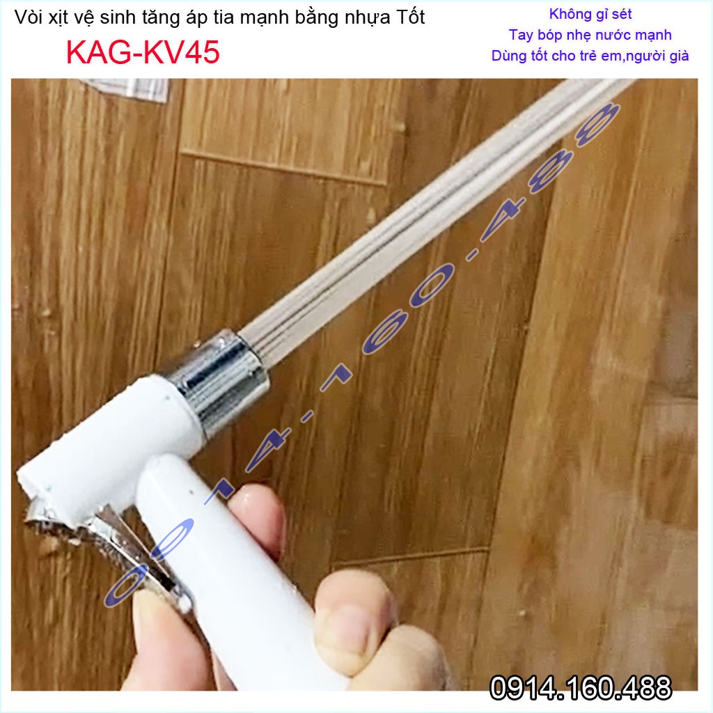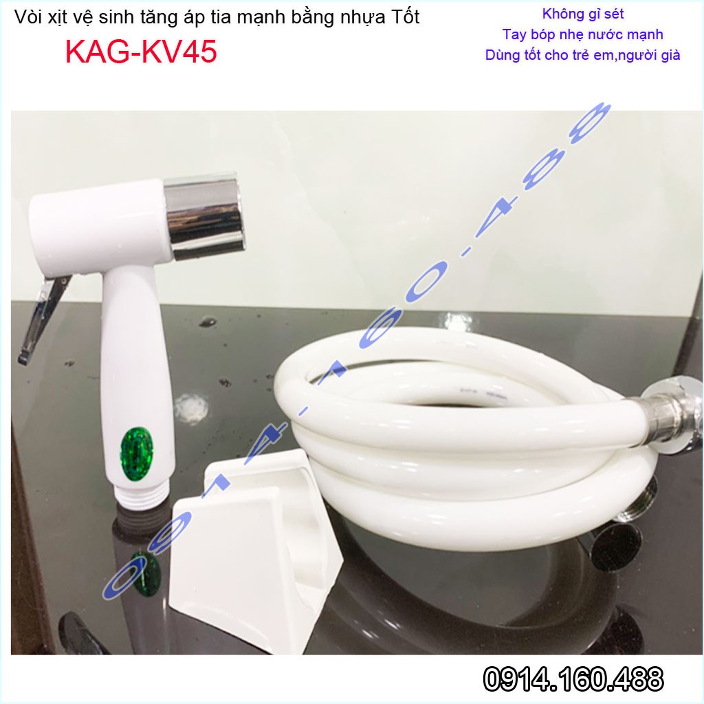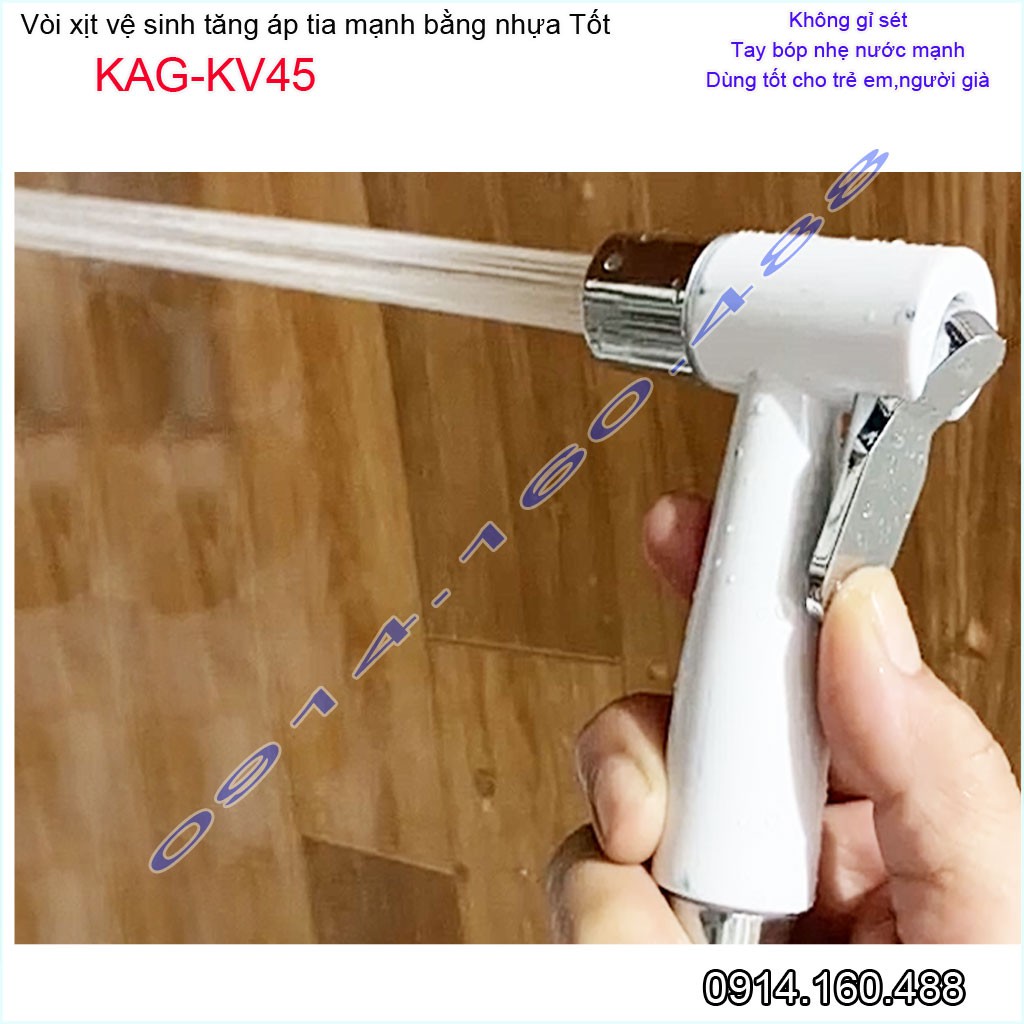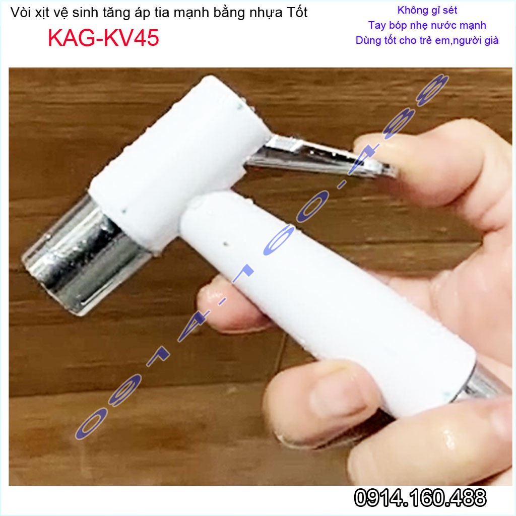 Chật liệu : Vòi xịt KAG-KV45 nhựa trắng; Vòi xịt KAG-KV46 nhựa mạ inox bóng