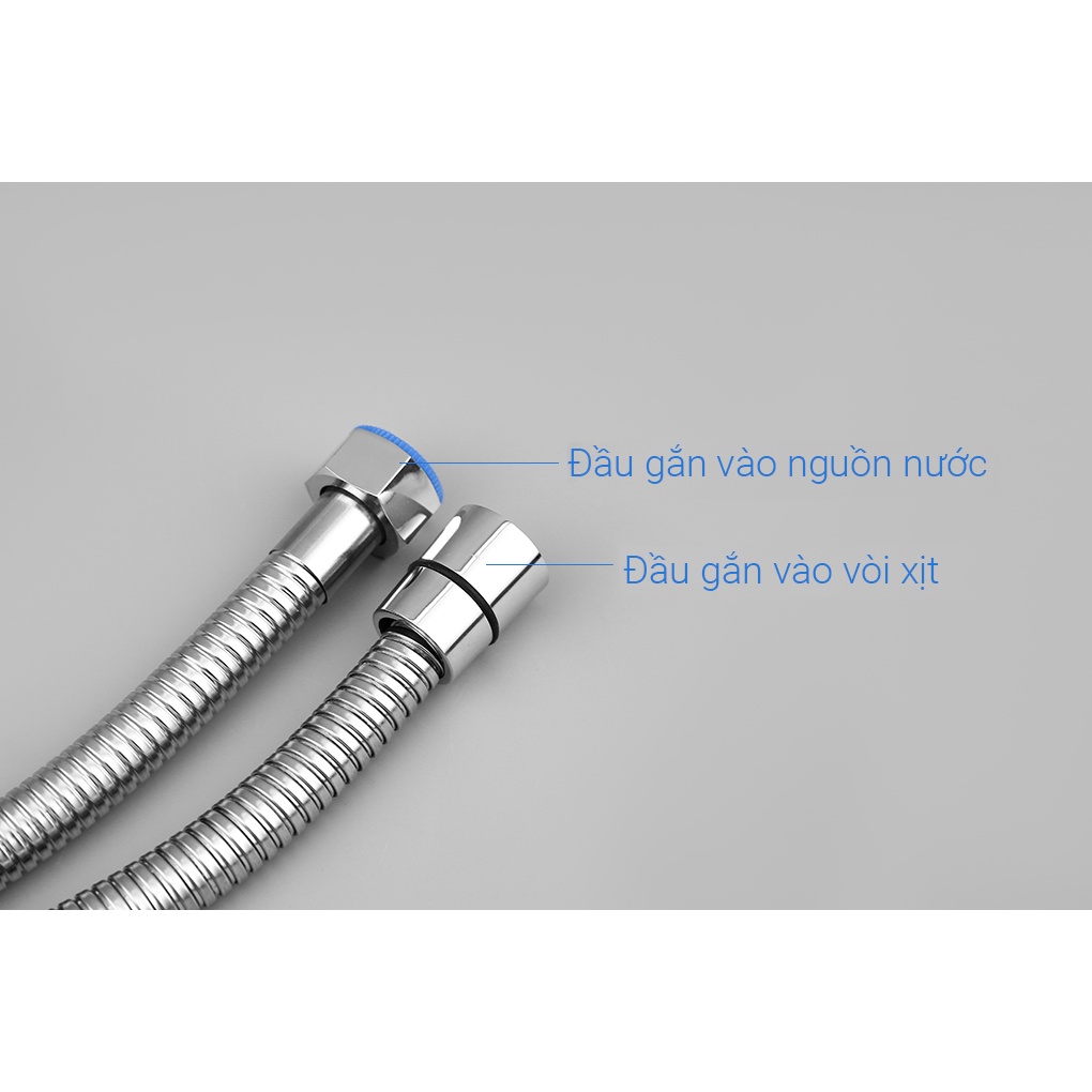 ● Dây inox tán thau với cổ vặn đồng, chiều dài 123 cm sử dụng thuận tiện, linh hoạt, ruột nhựa ti ô chịu áp suất cao, đàn hồi tốt, bền bỉ, chống đứt gãy hiệu quả