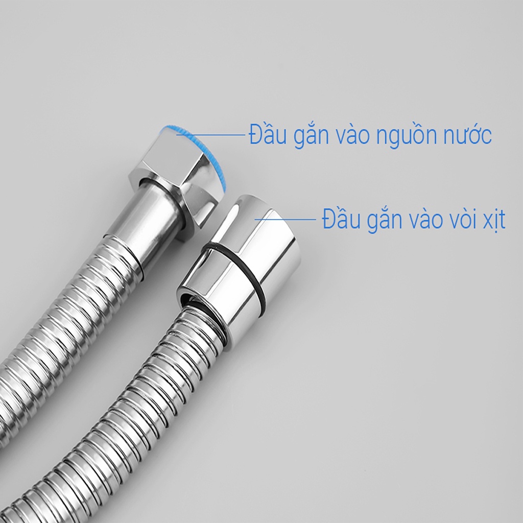 Dây xịt dài 120 cm vỏ inox xi mạ sáng bóng, ruột nhựa ti ô tiện lợi vệ sinh những vị trí xa nguồn nước.