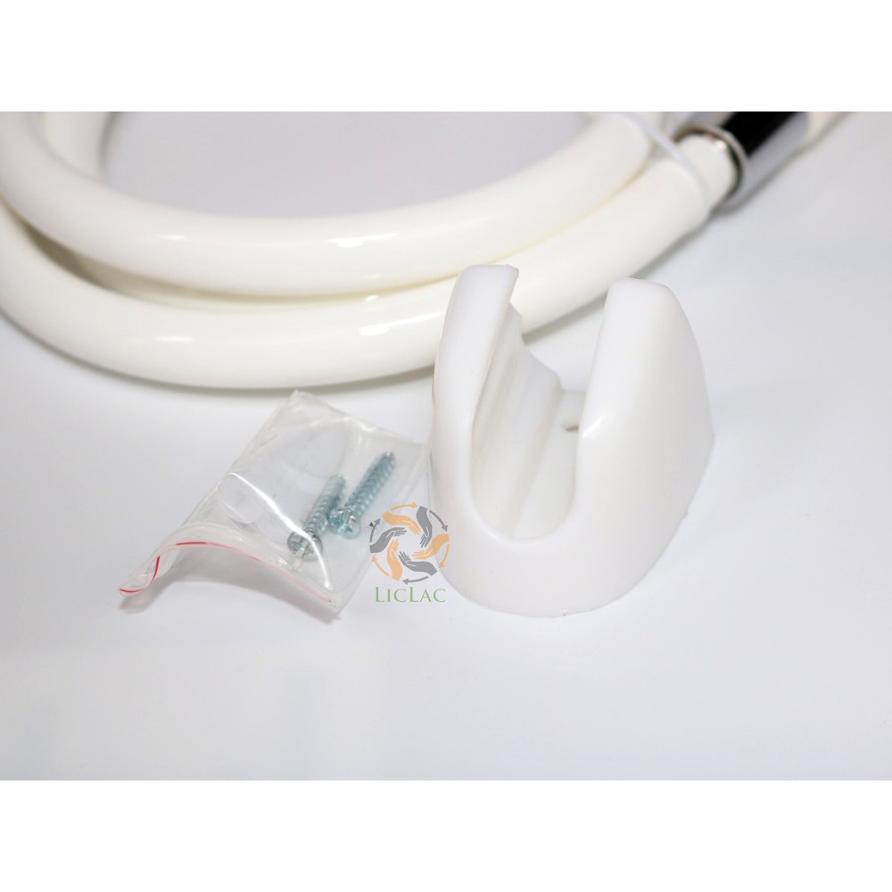 - Bộ sản phẩm bao gồm : 1 đầu vòi xịt, 1 dây dẫn 1,2m, 1 đế cài. bộ ốc