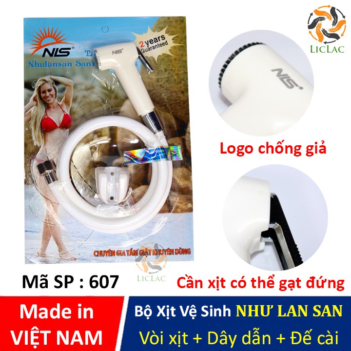 Bộ vòi xịt vệ sinh toilet Như Lan San 607 loại Cao Cấp dây 1m2, Vòi xịt vệ sinh Tăng Áp Chính Hiệu - LICLAC