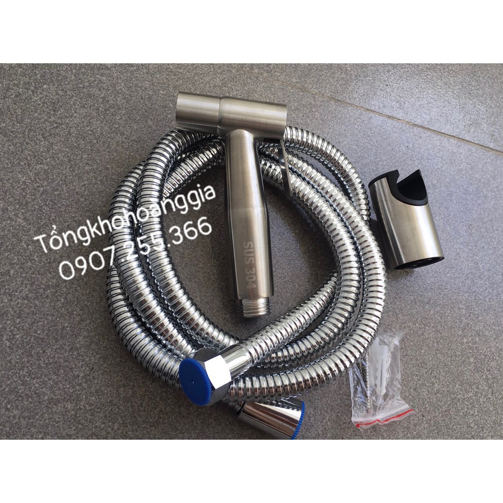 Bộ sản phẩm vòi xịt vệ sinh inox 304 thiết kế gọn gàng, dễ dàng cầm nắm và sử dụng.