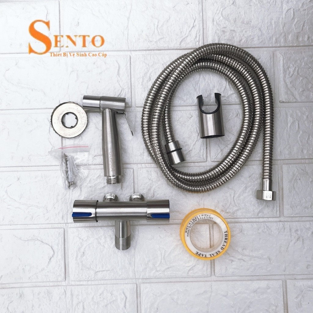 Vòi Xịt Vệ Sinh Van Chia Nước SENTO SUS304 Có 2 Cổng Xả Đường Kính Lắp Đặt 20cm-Tặng Cuộn Băng Tan