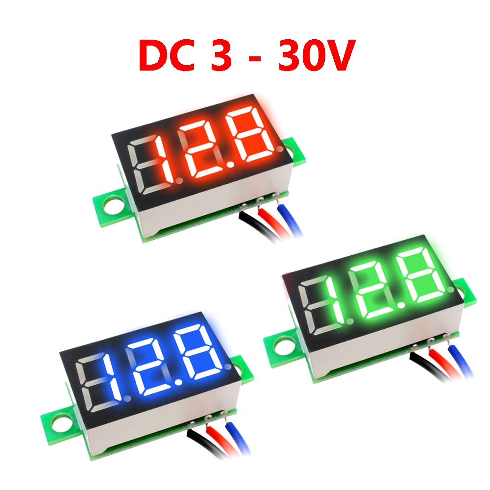 Vôn kế DC led 0.36, Đồng Hồ Đo Điện Áp Led DC Báo vôn Một Chiều Volmeter Báo điện áp DC đo áp Bình 12V báo nguồn 5V 24V-Đồng Hồ Led Báo vôn DC sủ dụng LED 7 đoạn 0.36 inch, có các màu đỏ, xanh dương hoặc xanh lá