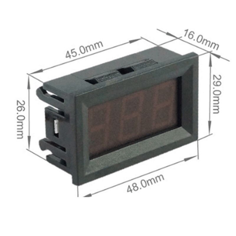 Vôn kế hiển thị LED thanh trực quan, dải điện áp đo từ 4.5V đến 30V, vỏ nhựa thiết kế có lẫy ngàm giữ chặt vôn kế vào các loại vỏ hộp. Dễ đấu nối, độ chính cao và chi phí thấp.Led 3 chữ số : Đỏ hoặc Xanh ngẫu nhiên