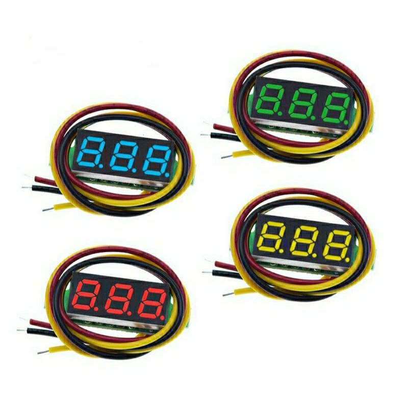 Vôn kế DC 0-100V 3 dây mini màn hình kỹ thuật số LED 0.28 inch hiển thị đèn màu xanh dương/đỏ/xanh dương/vàng.