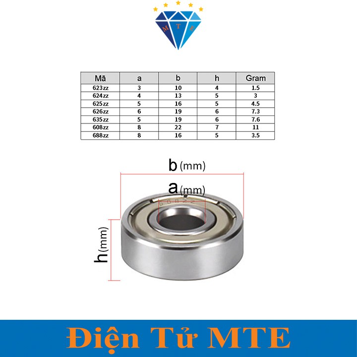 - 608zz (8 * 22 * 7) (đường kính lỗ 8mm, đường kính ngoài 22mm, độ dày 7mm)